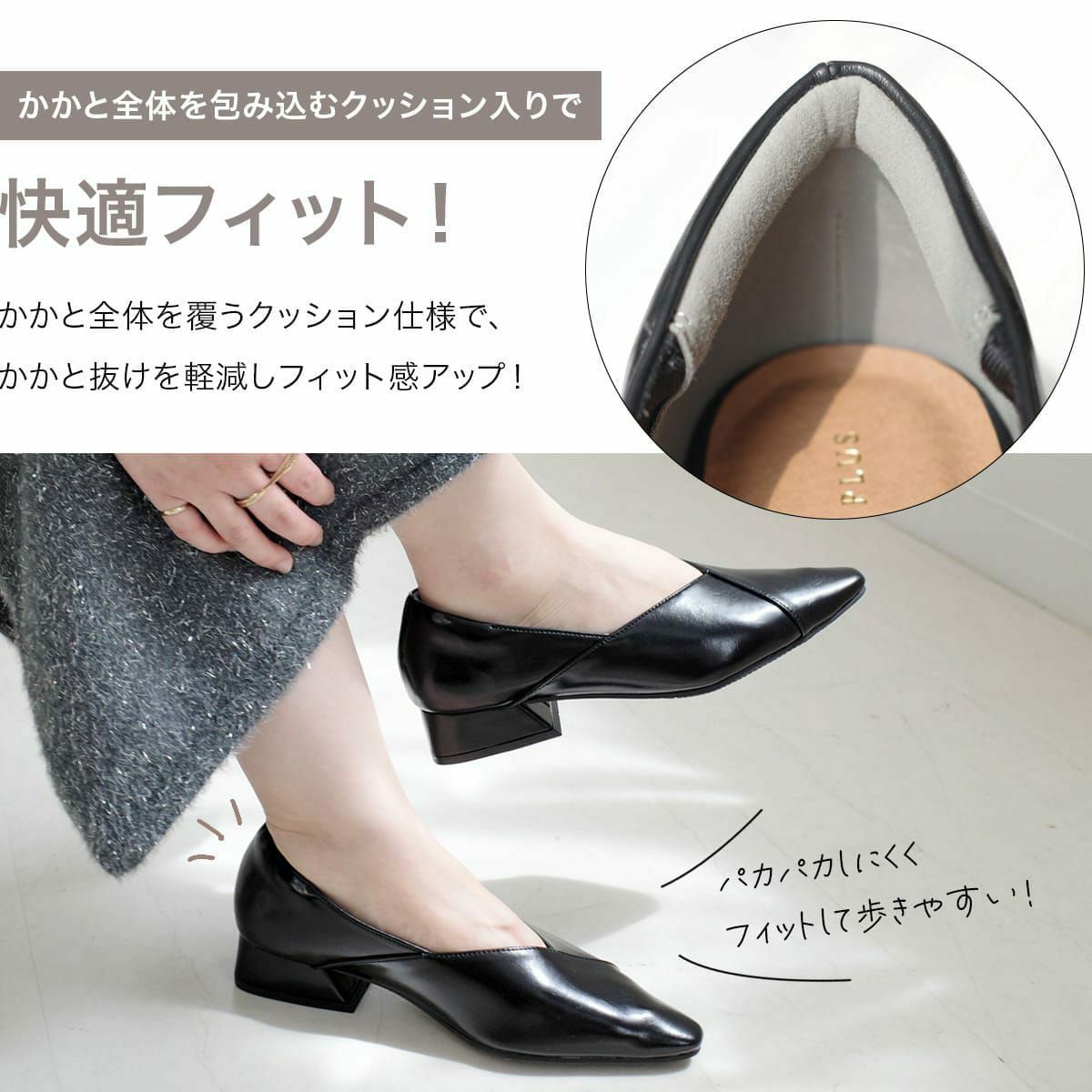 ソフトスクエアトゥVカットパンプス レディース