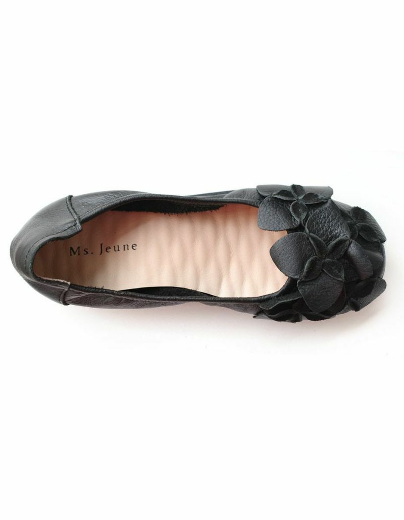 温もりを感じさせるフラワーモチーフが目を惹くフラットパンプス