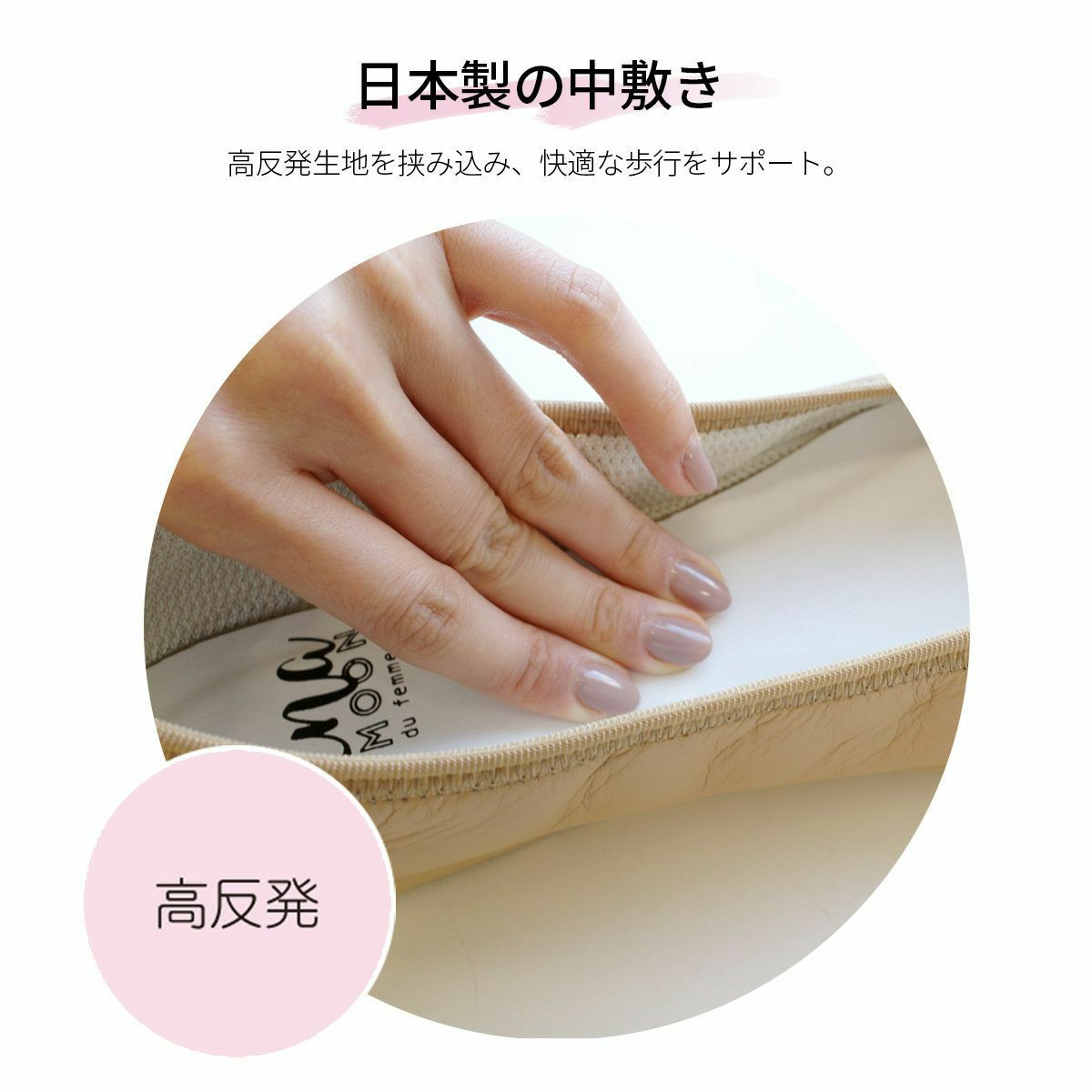 3cm・5cmヒールは足への荷重バランスが真ん中になる丁度良い高さと言われています。適度なヒールは足裏の筋肉の負担を軽減し歩行を楽にしてくれます。