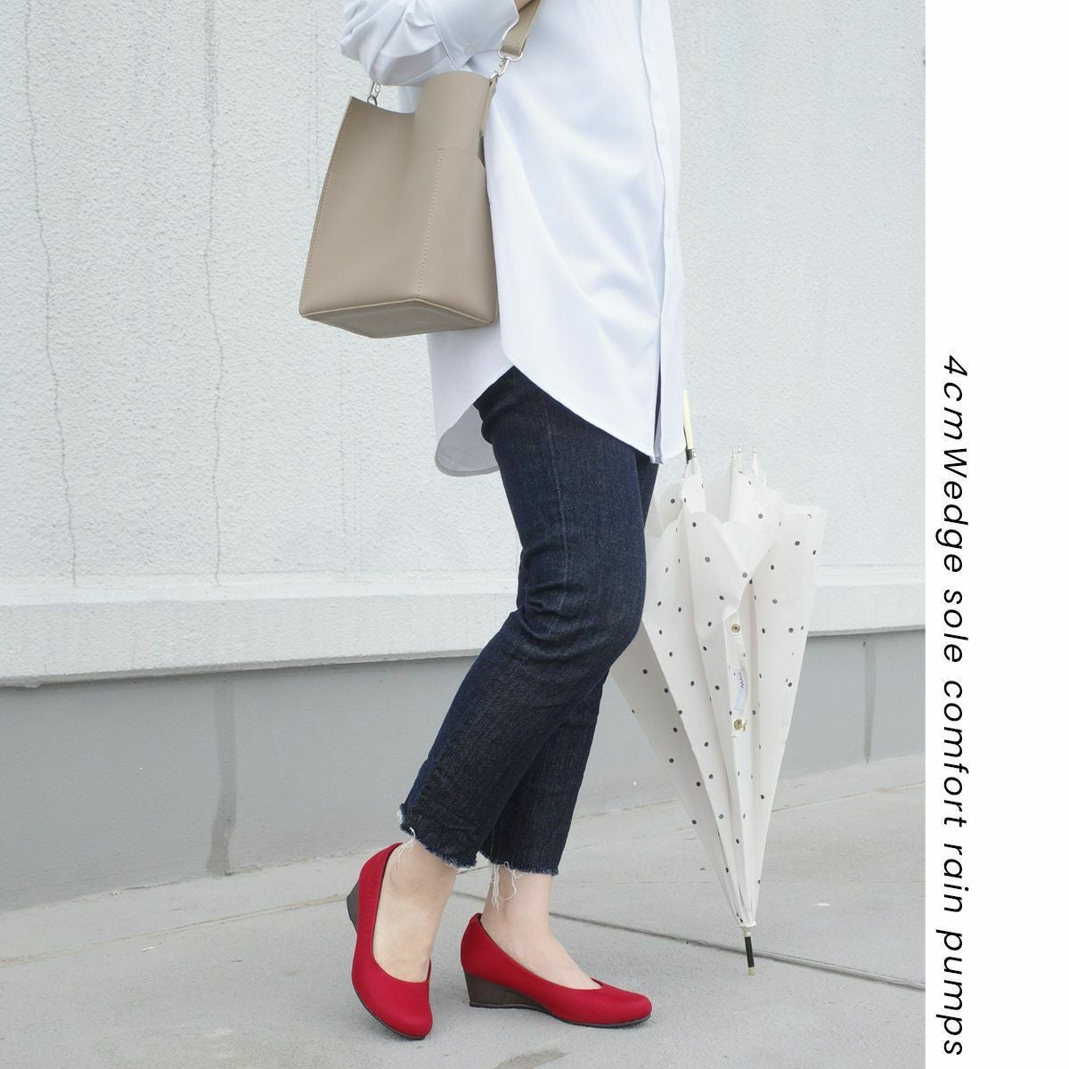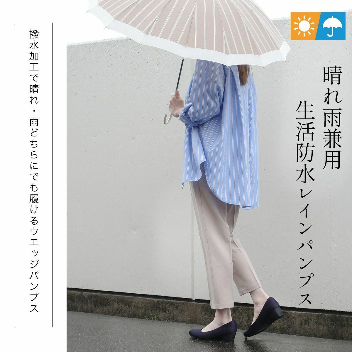 晴雨兼用 生活 防水 ポインテッドトゥ メリージェーン ローヒール パンプス レディース