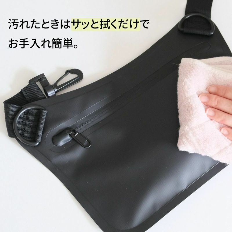 ショルダーバッグ、ウエストバッグ、ベルトポーチとして使える3way仕様無縫製なので、水からカバンの中身を守ることができ、