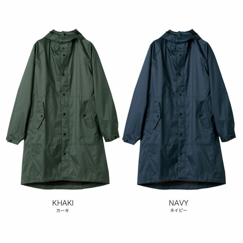 浸水防止のための縫い目のシームテープ処理や、通気性のための空気穴など、レインアイテムコートとしての機能を強化。首元までボタンを閉めると雨除け効果がさらにアップ。シックな色合いで、着る場所や年齢も幅広くご活用いただけます。