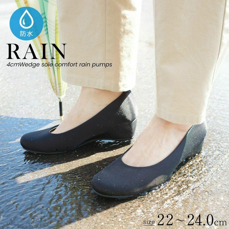 【在庫限り!特別価格!】レインアイテムパンプス レディース ウエッジヒール 強撥水 軽量 雨晴兼用