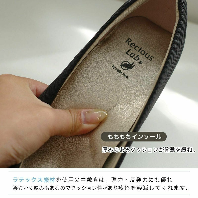 ラテックス素材を使用の中敷きは、弾力・反発力にも優れ柔らかく厚みもあるのでクッション性があり疲れを軽減してくれます。