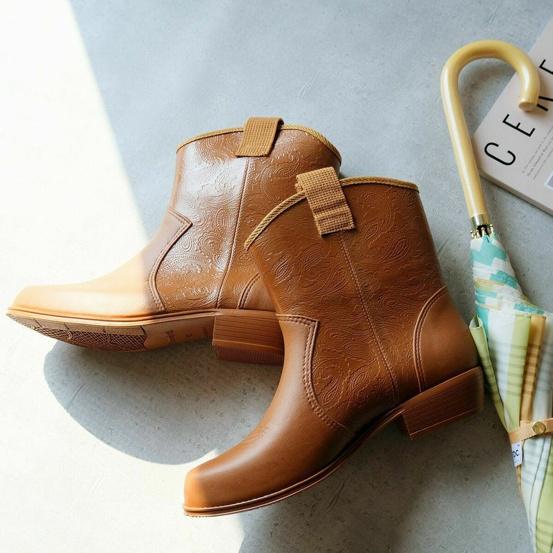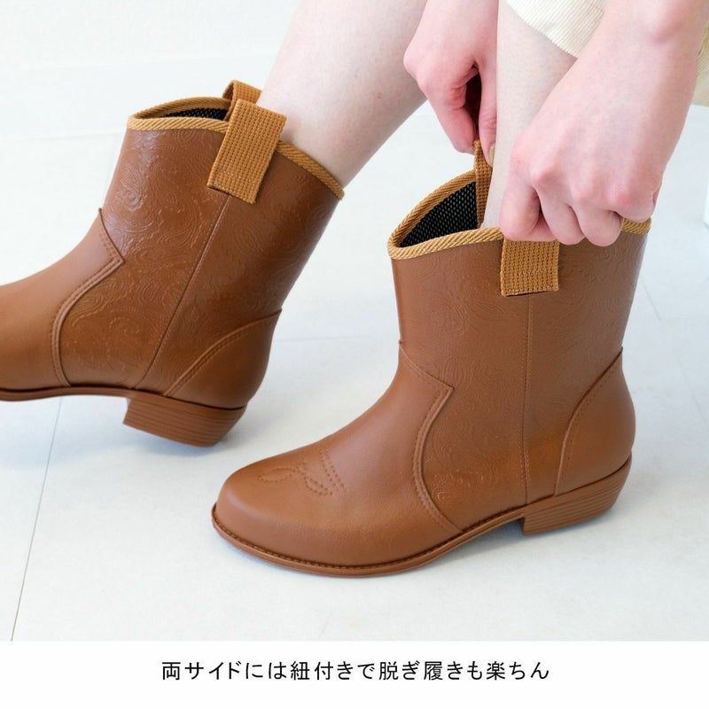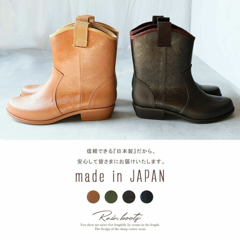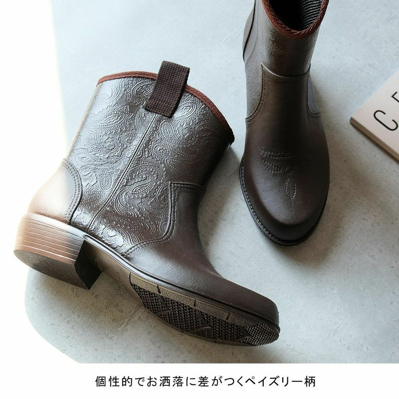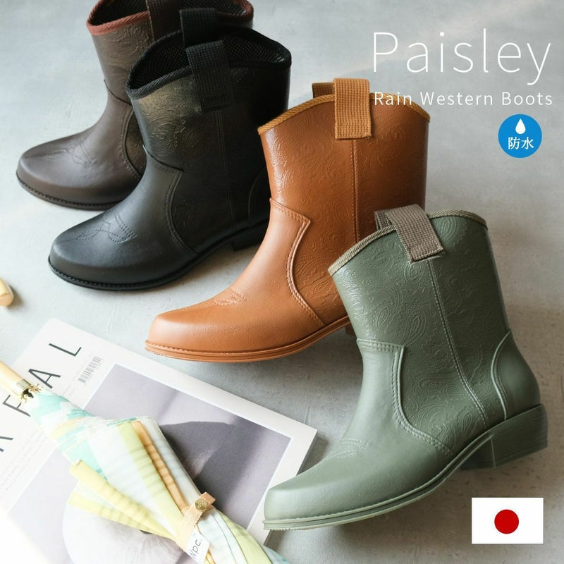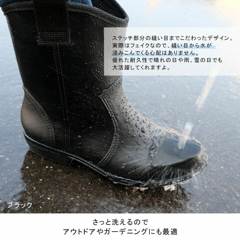 ペイズリー柄ウエスタンレインアイテムブーツ日本製ラバーシューズ 長靴ショート