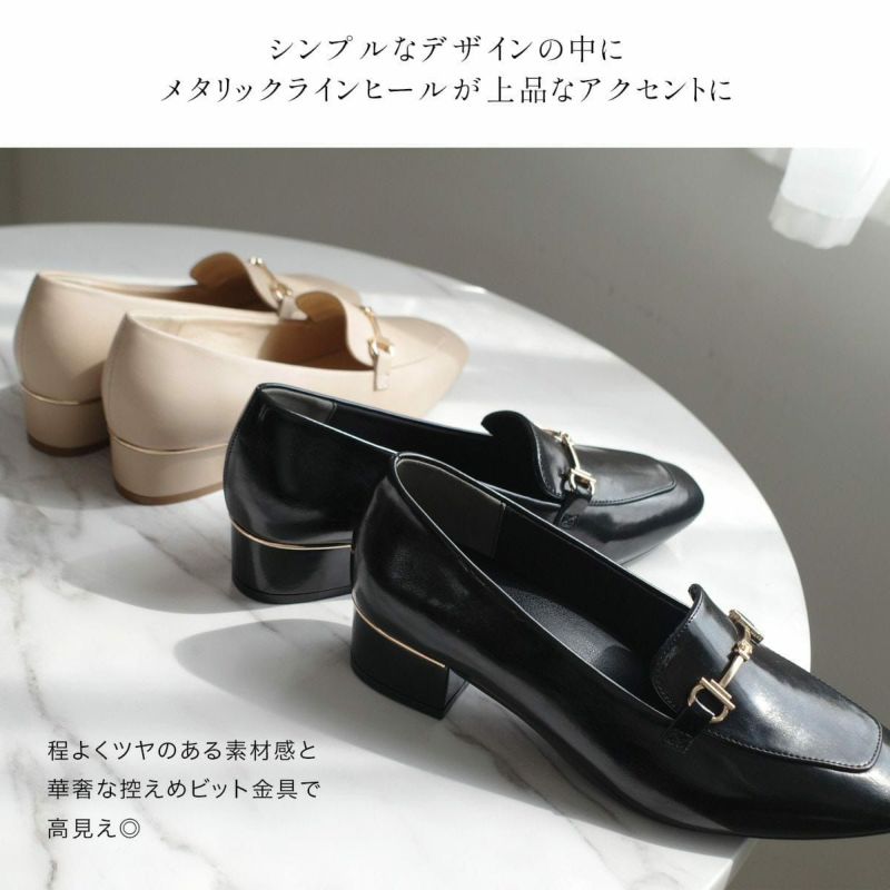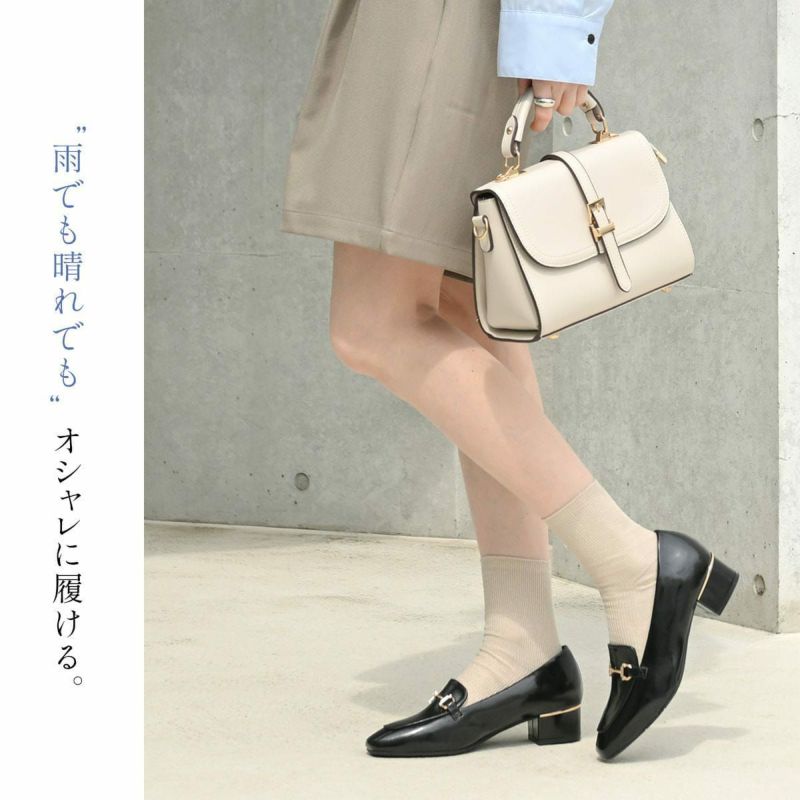 防水・防滑・快適な履き心地を兼ね備えた一足で、ビジネスやカジュアルシーンを問わず活躍します。シンプルなデザインの中にメタリックラインヒールが上品なアクセントに!