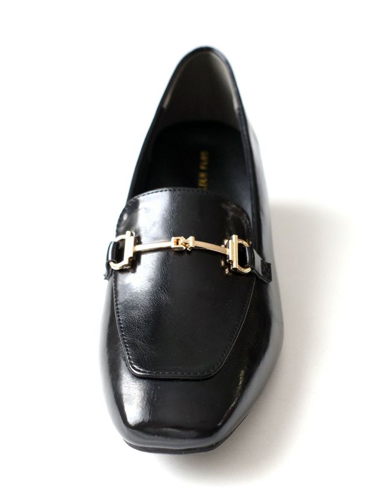 晴雨兼用生活防水スクエアトゥビットローファーメタリックラインレインシューズ レディース