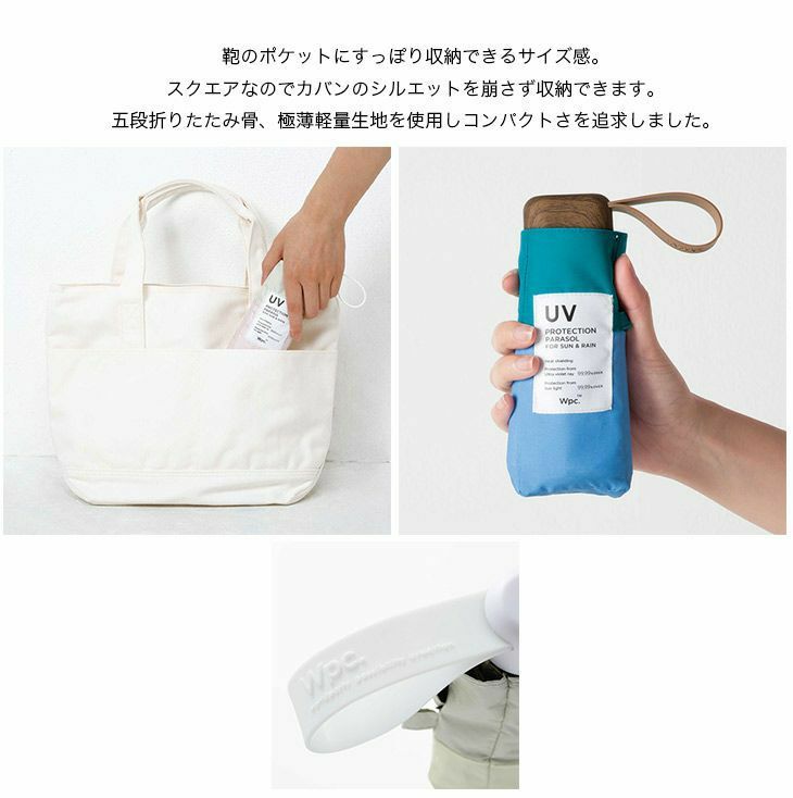 鞄のポケットにスッポリと収納できるコンパクトな日傘。