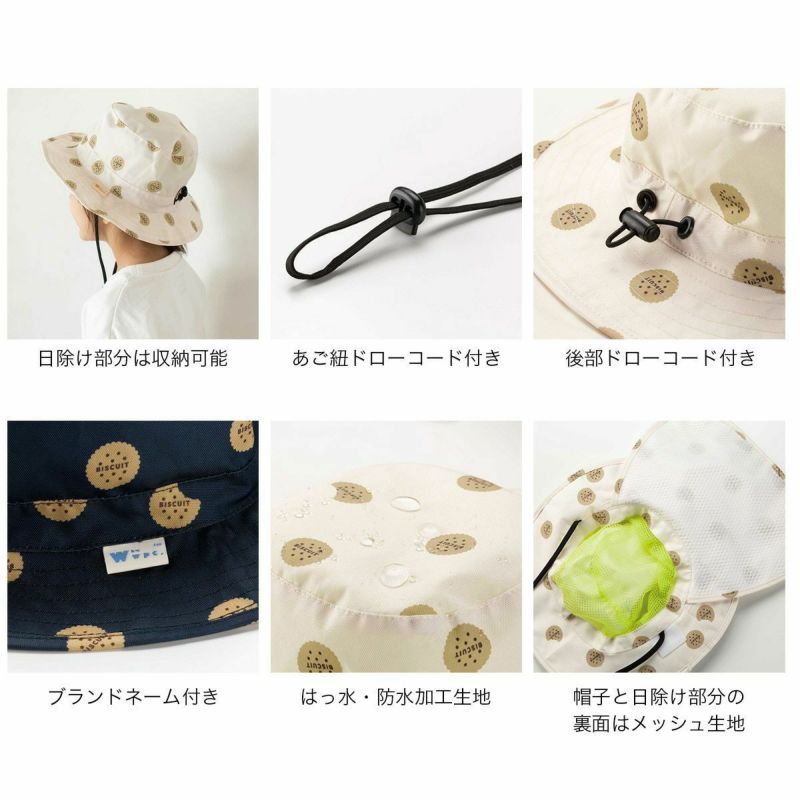 撥水加工、日よけ付きで紫外線対策にぴったりなキッズハット