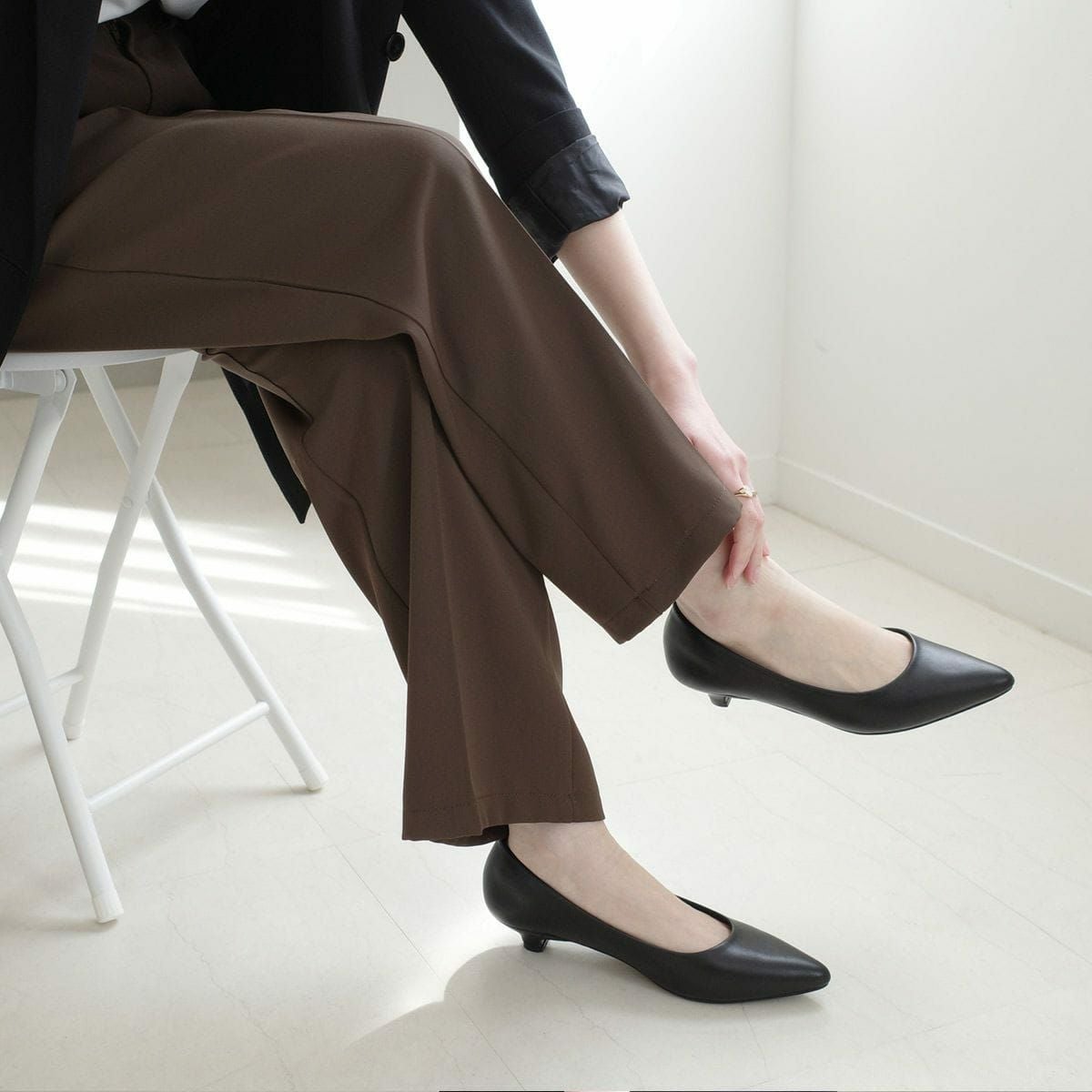 ヒールの高さは、3~5cmがおすすめです。これは、高すぎず低すぎず、かつ足をきれいに見せる高さです。