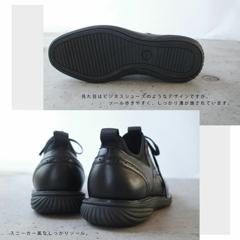 履き口はストレッチ仕様でスムーズな脱ぎ履きを実現。ベーシックなデザインは、ビジネスシーンだけでなくデイリーでも活躍!