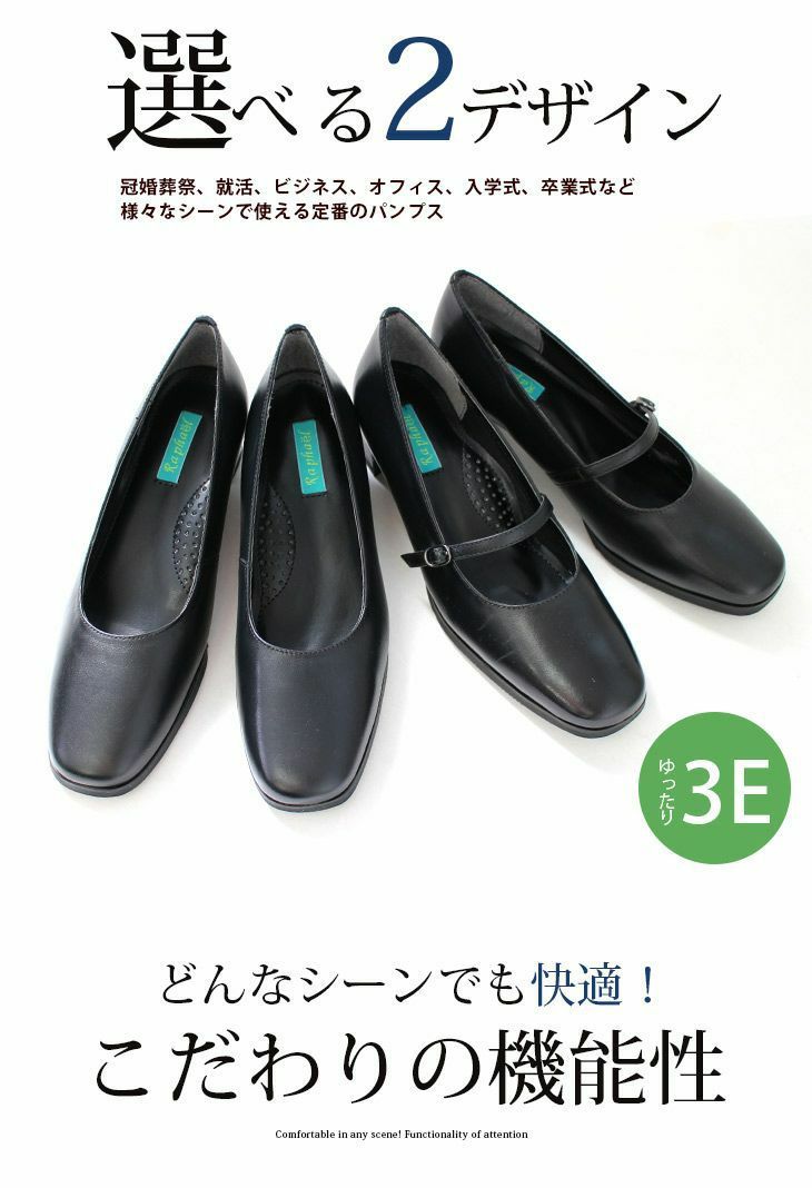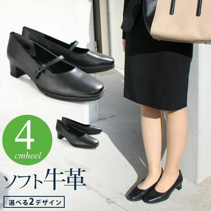 選べる本革フォーマルパンプス4cmヒール!スクエアトゥ 痛くない 黒 幅広3E リクルート シンプル 冠婚葬祭 ストラップ プレーン