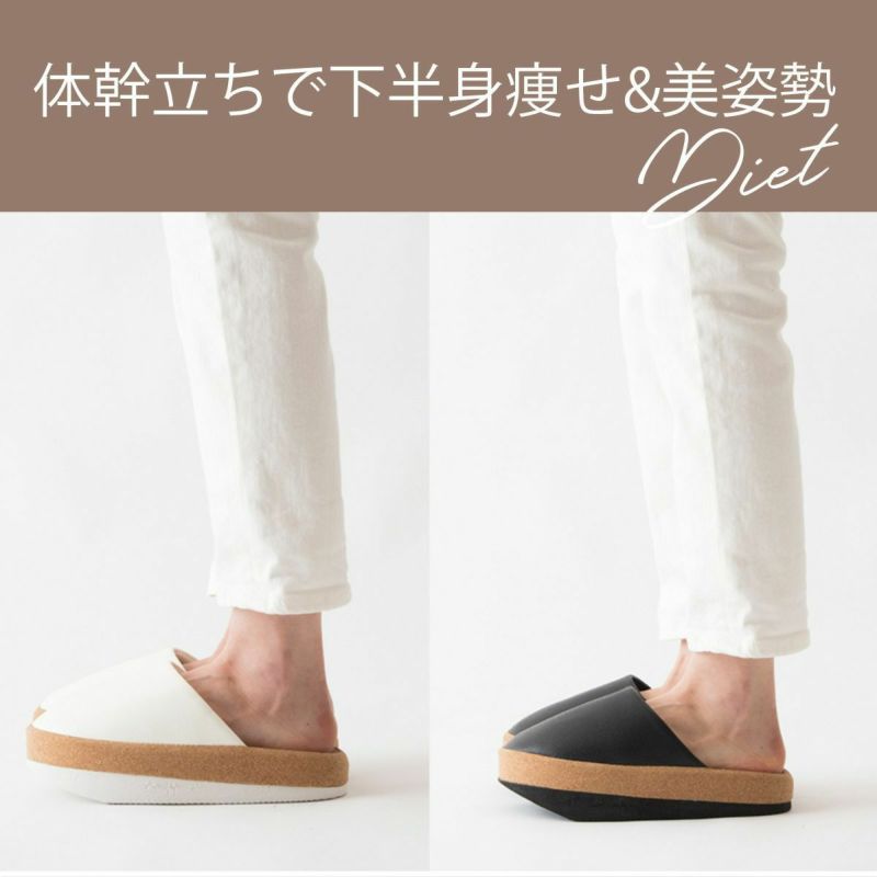 足底部分に角度がついている為、重心を後ろに意識させ下腹、ヒップ、ふくらはぎを鍛え、
