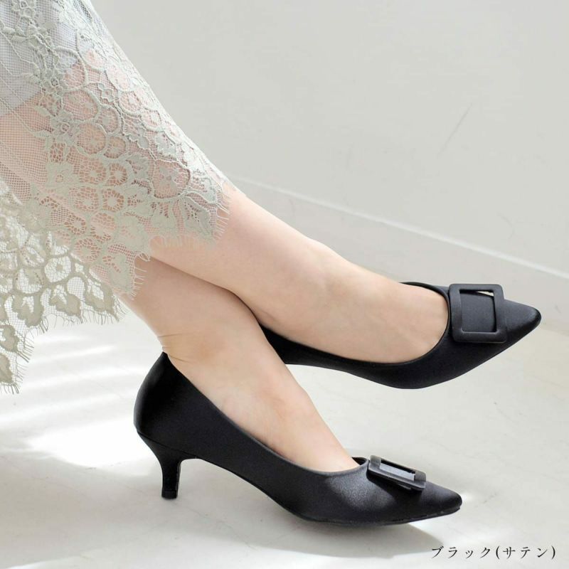 【2足以上で10%OFF対象】バックルモチーフポインテッドトゥパンプス レディース