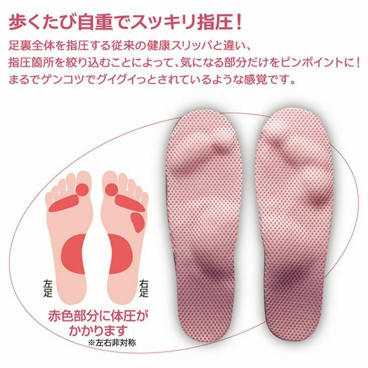 まるで足ツボサロンの心地よさ♪足裏専門家と共同開発足裏全体を指圧する従来の健康スリッパと違い、指圧箇所を絞り込むことによって、