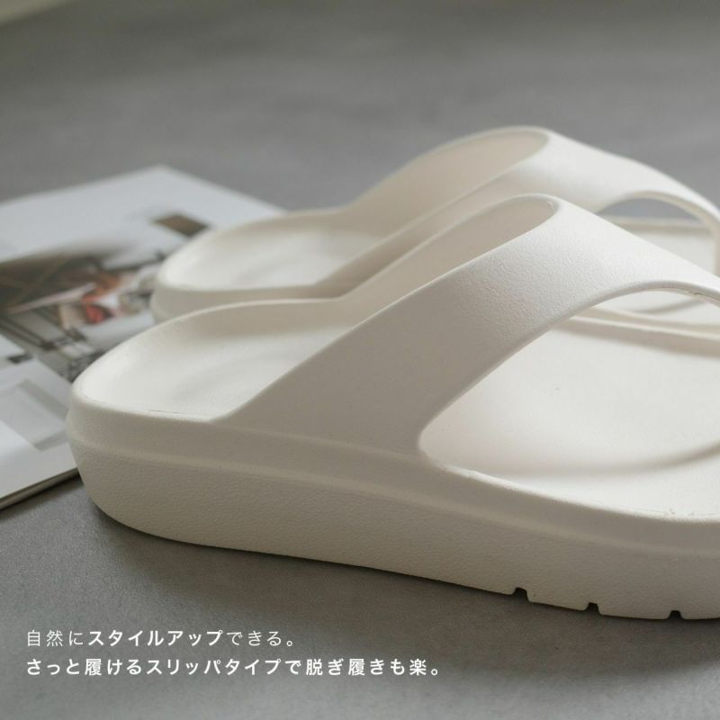 EVA素材で軽量!ほどよい厚底で履きやすい。リゾートシーンの海やプールなどのビーチサンダルとしても大活躍。