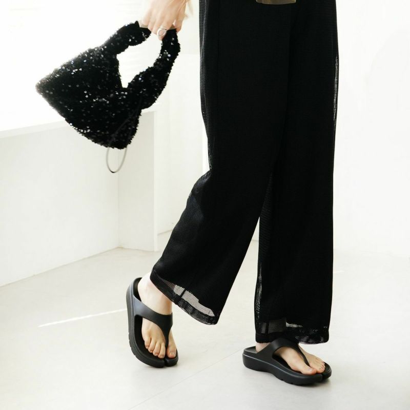 厚底でさっと履けるのでワンマイルコーデにもおすすめです。