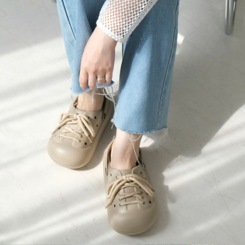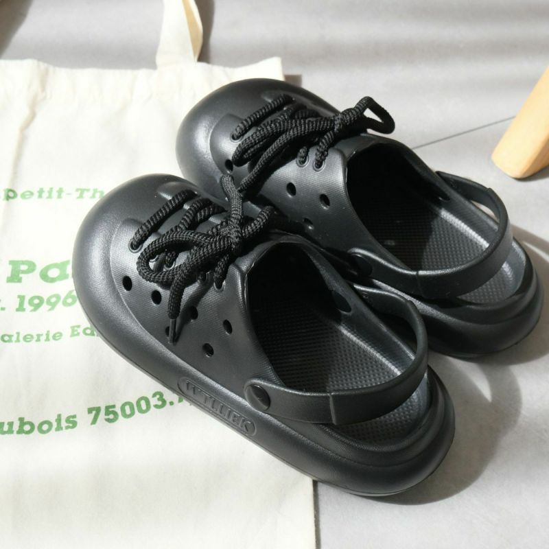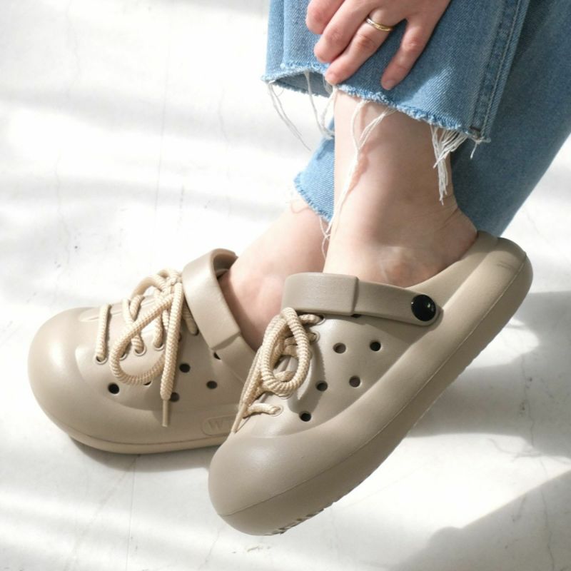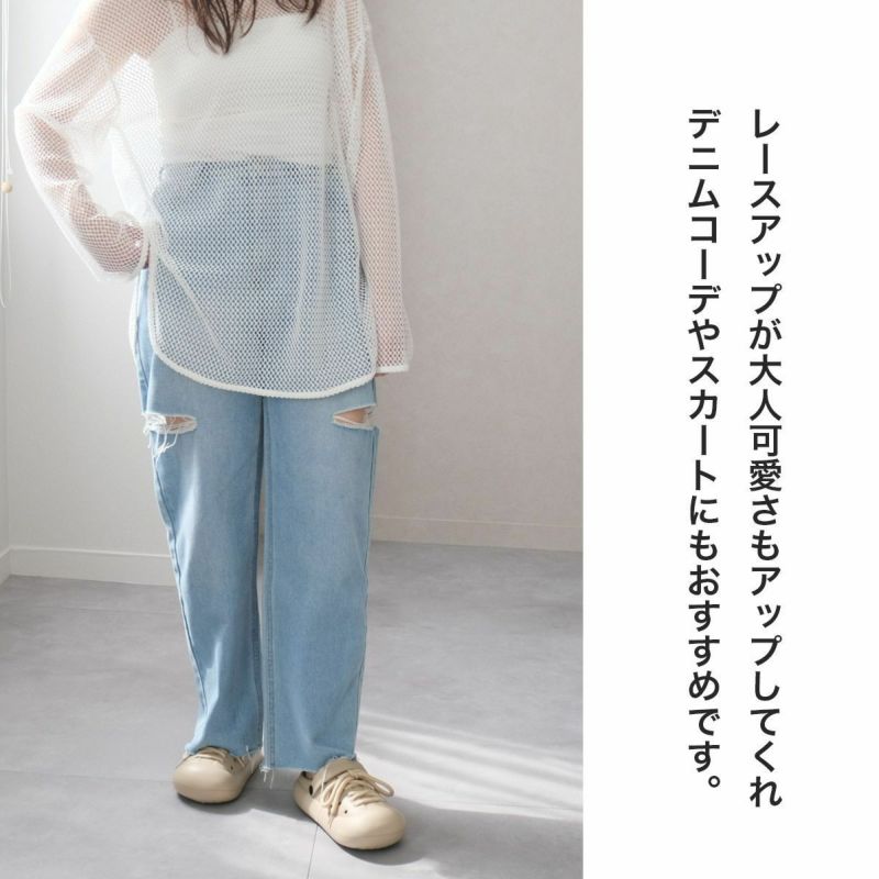 水濡れOKなEVA素材はお手入れも楽ちん厚底EVAサンダルにレースアップデザインをMIXで可愛さアップ!