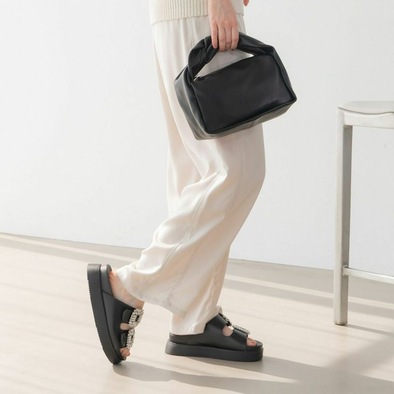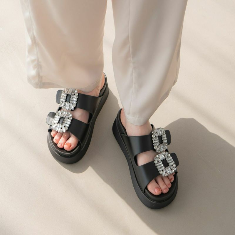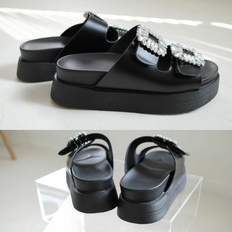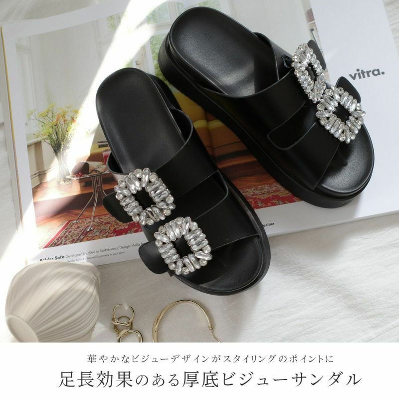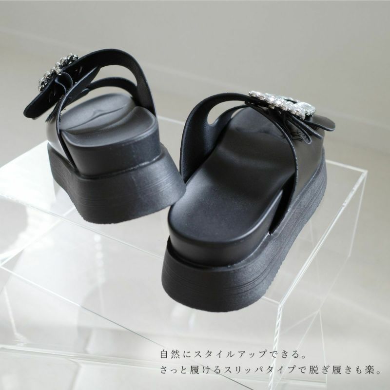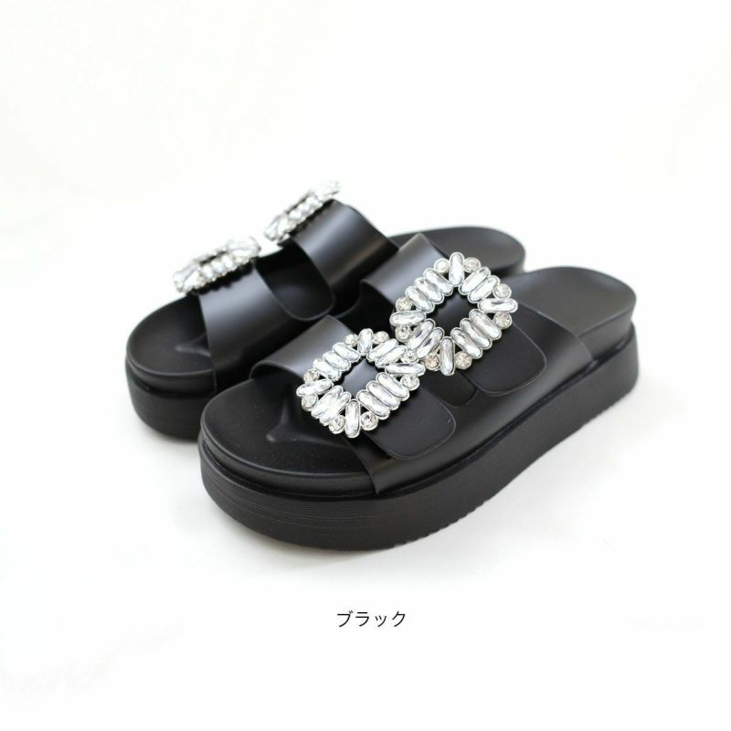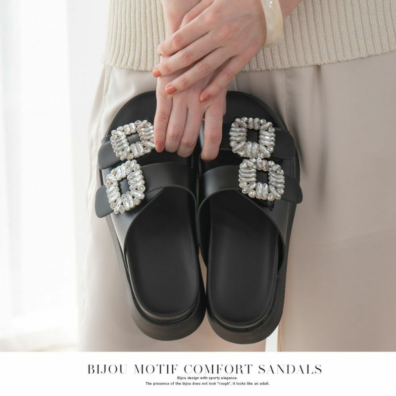 【在庫限り!特別価格!】厚底ビジューダブルベルトサンダル レディース