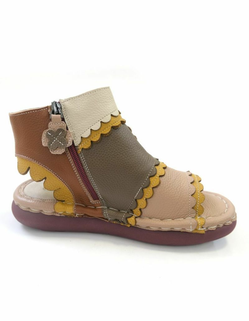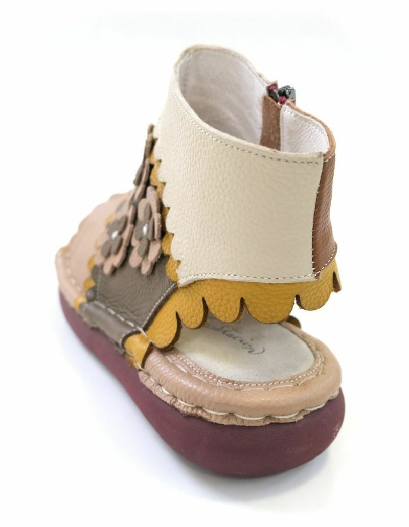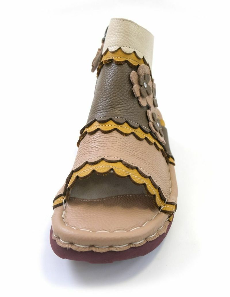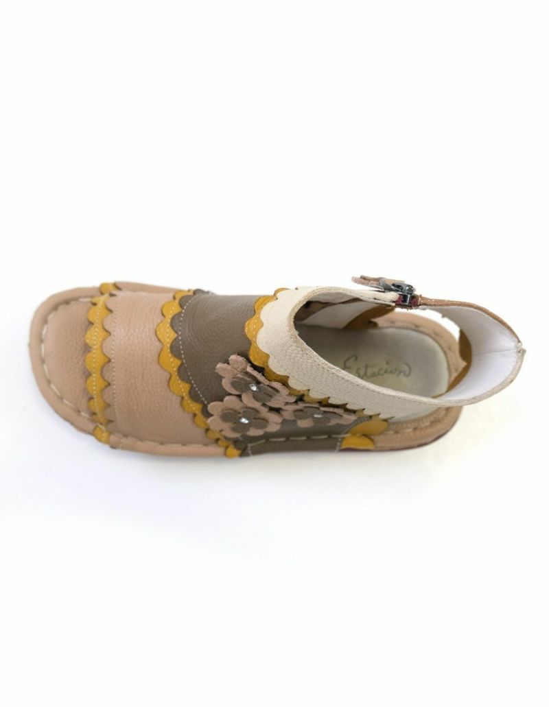 【在庫限り!特別価格!】サンダルブーツサンダル牛革コンフォートサイドファスナーフラワーモチーフフィールドEstacionエスタシオン レディース