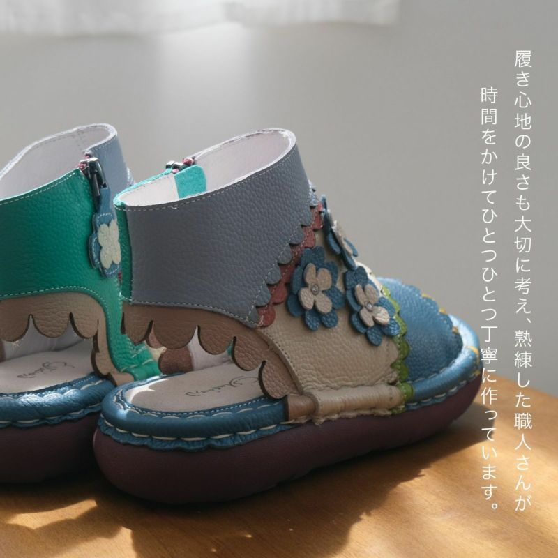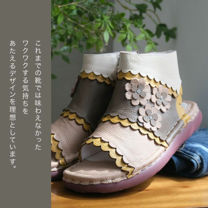Estacion~エスタシオン~・フラワーモチーフ本革ブーツサンダル