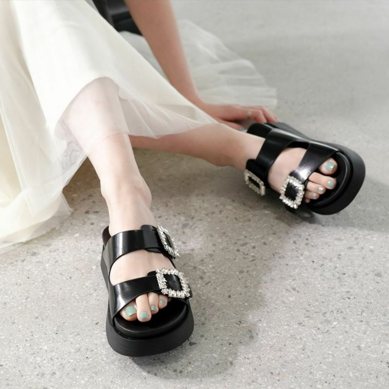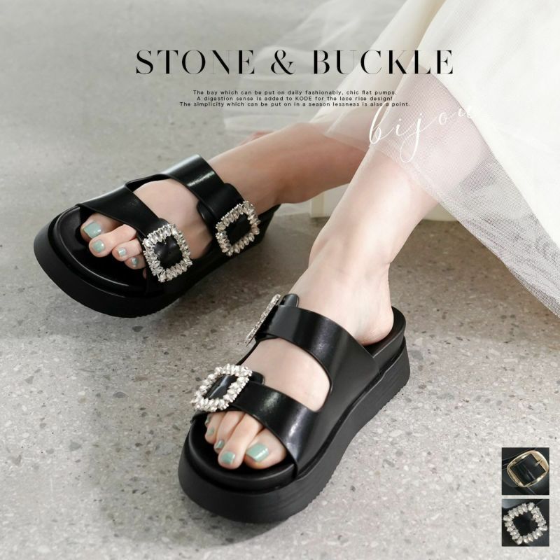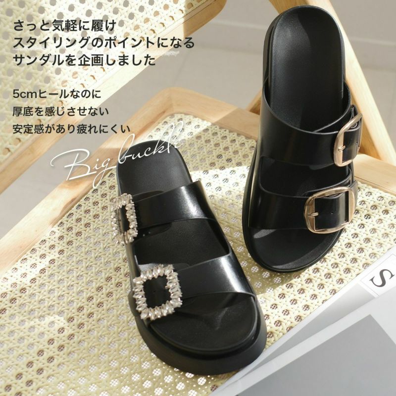 厚底ビジューバックルダブルベルトサンダルコンフォート レディース
