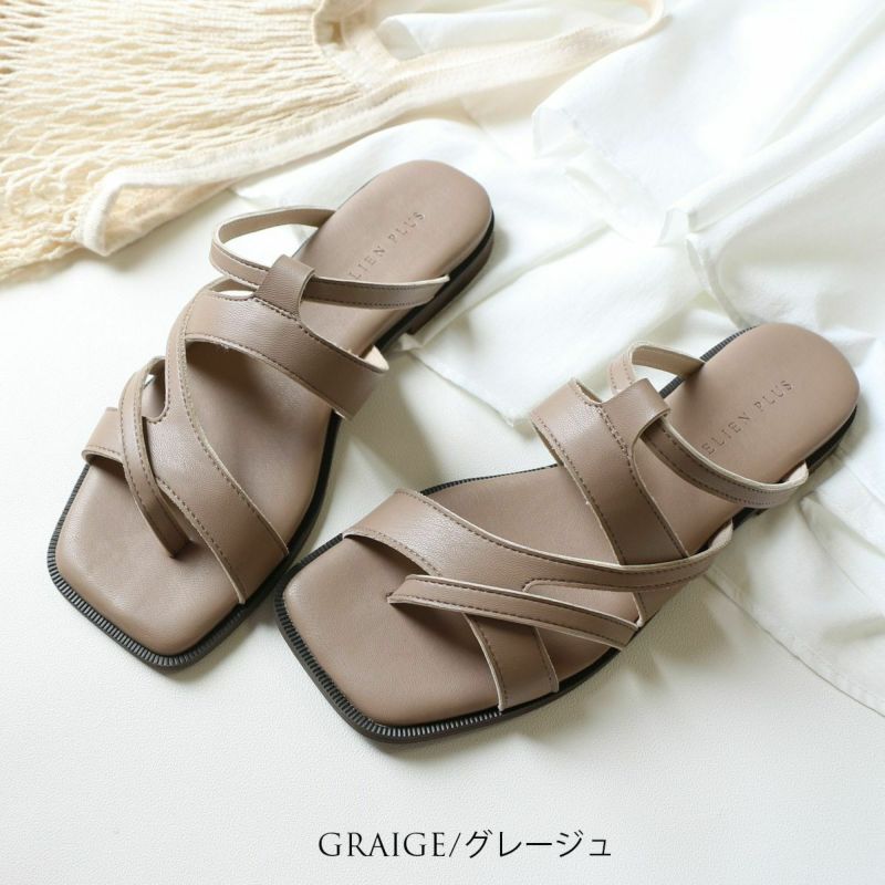 【返品交換不可】【在庫限り!特別価格!】スクエアトゥメニーストラップサンダル レディース