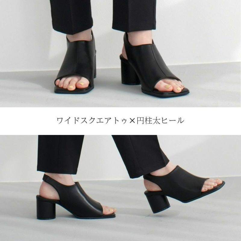 ワイドスクエアトゥでモードな雰囲気に。斜めに走るカットデザインとスクエアトゥが今っぽい一足。