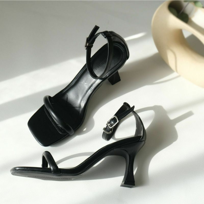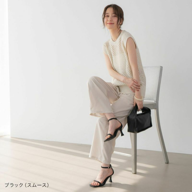 ぷっくりした甲ベルトにくびれヒールが華奢で女らしい