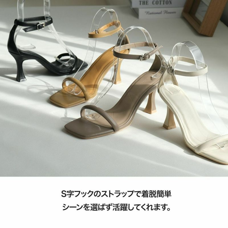 S字フックのストラップで着脱簡単ぷっくりしたフォルムが特徴的なアンクルストラップパテッドサンダル