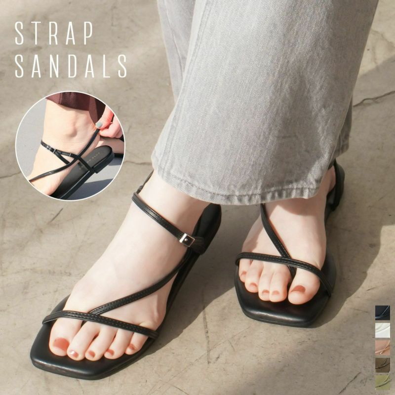 足を美しく見せてくれる華奢ストラップフラットサンダル