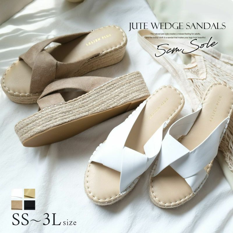 前後の高低差が少ないウェッジソールで歩きやすくなっていますナチュラルなジュートソールが大人のリラックス感を醸し出してくれる。