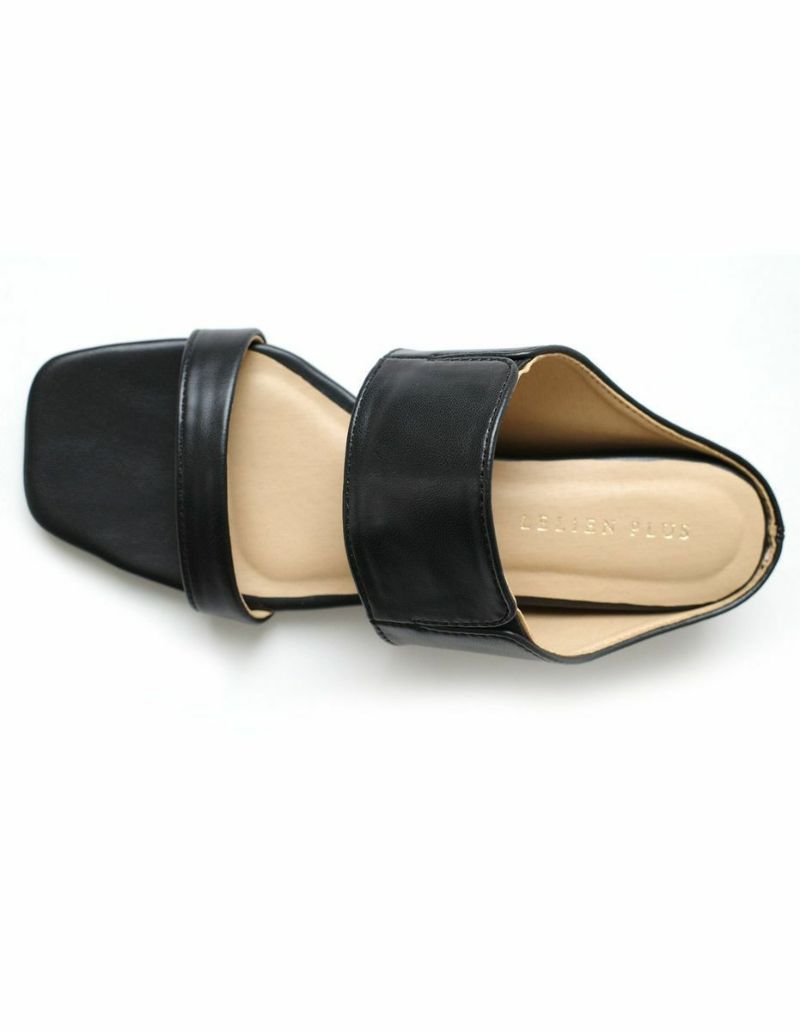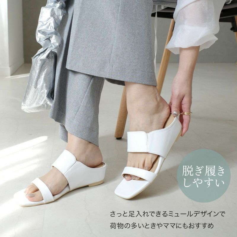 スクエアトゥウェッジソールミュールサンダルストラップ レディース