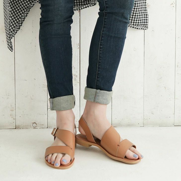 甲を覆った太めストラップでホールド感抜群のフラットサンダル