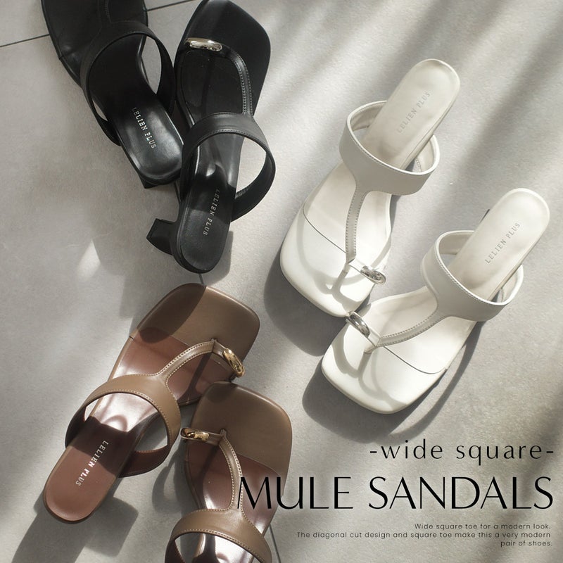 スクエアトゥトゥリングサムリング変形ヒールサンダル レディース
