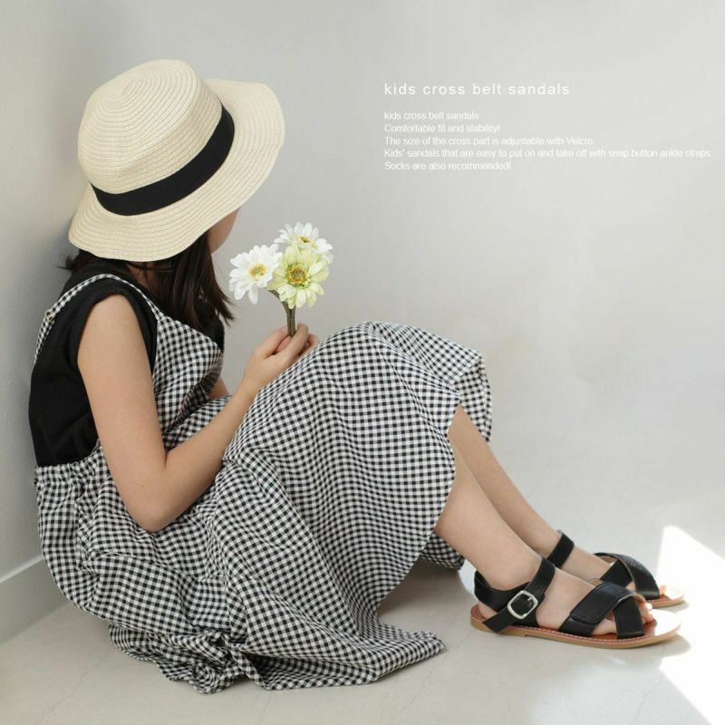 シンプルでかわいい!フィット感と安定感があり楽な履き心地!足首のストラップはスナップボタン仕様で脱ぎ履きしやすいキッズサンダル。