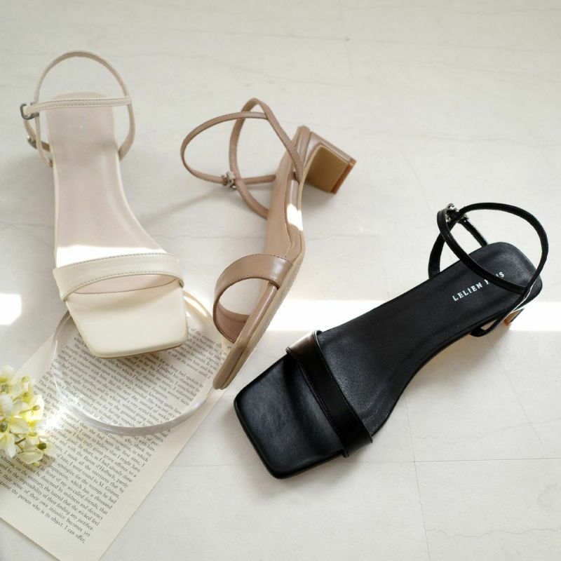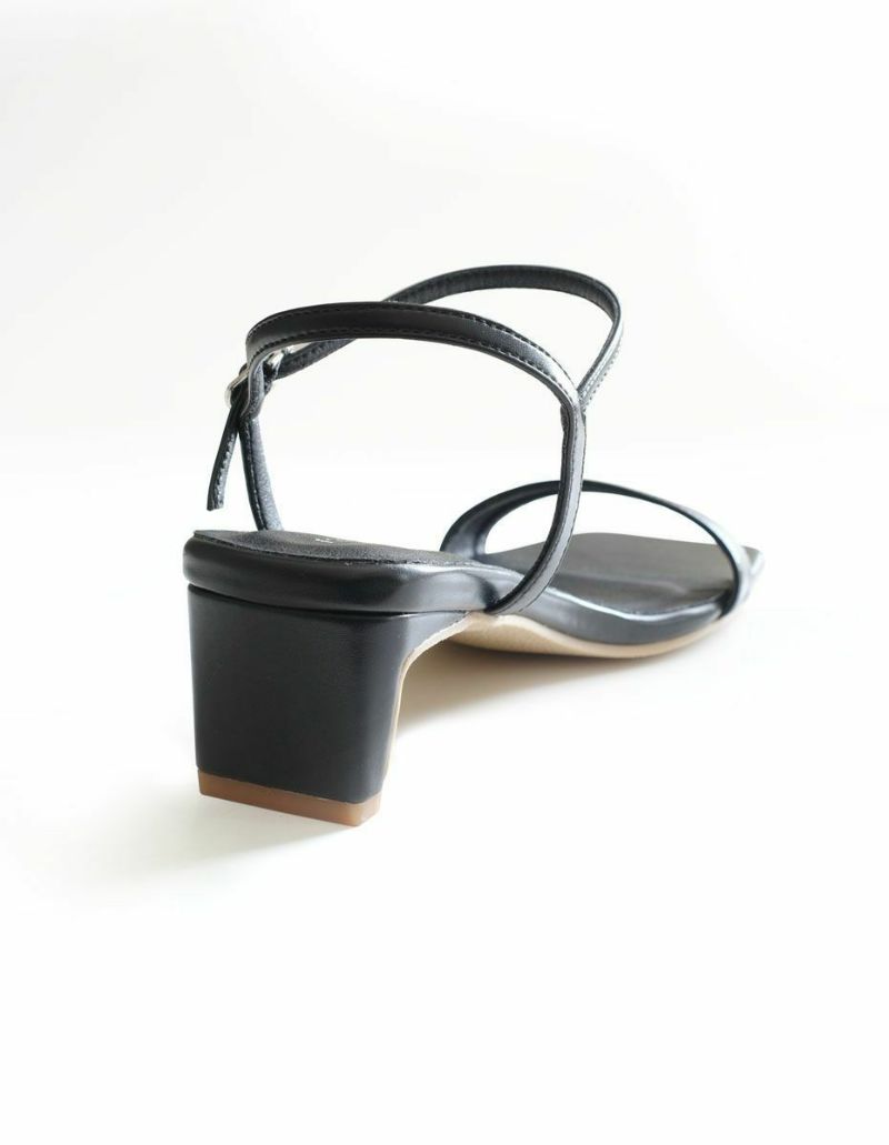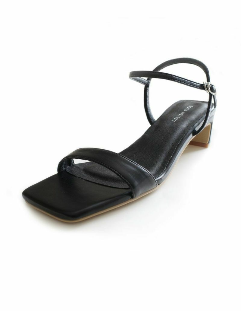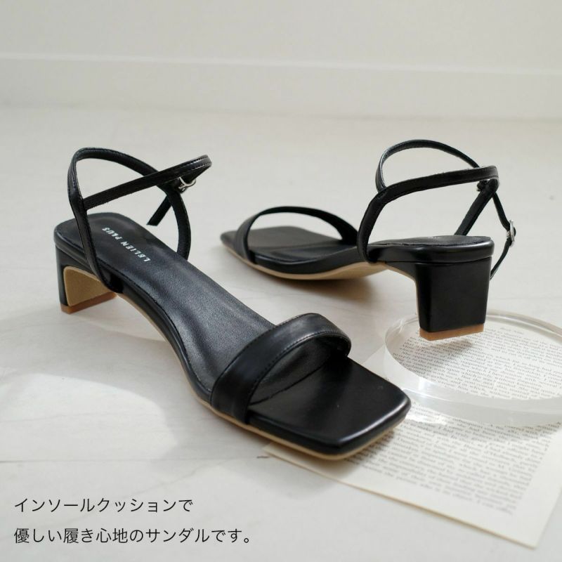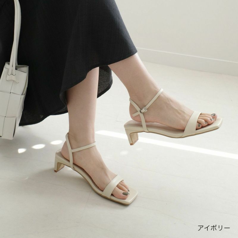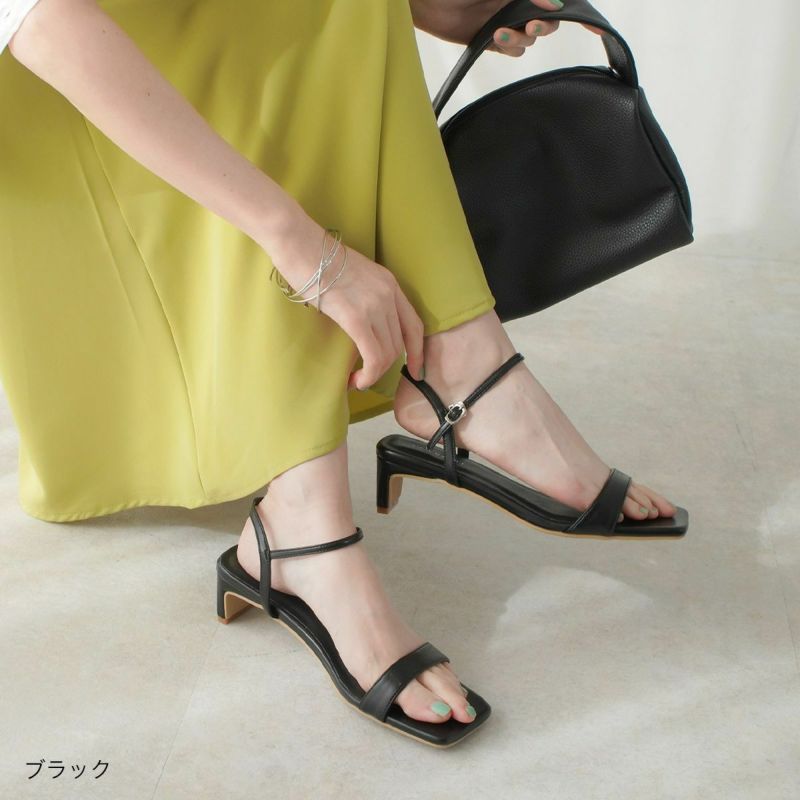 スクエアトゥプレートヒールサンダルストラップ レディース