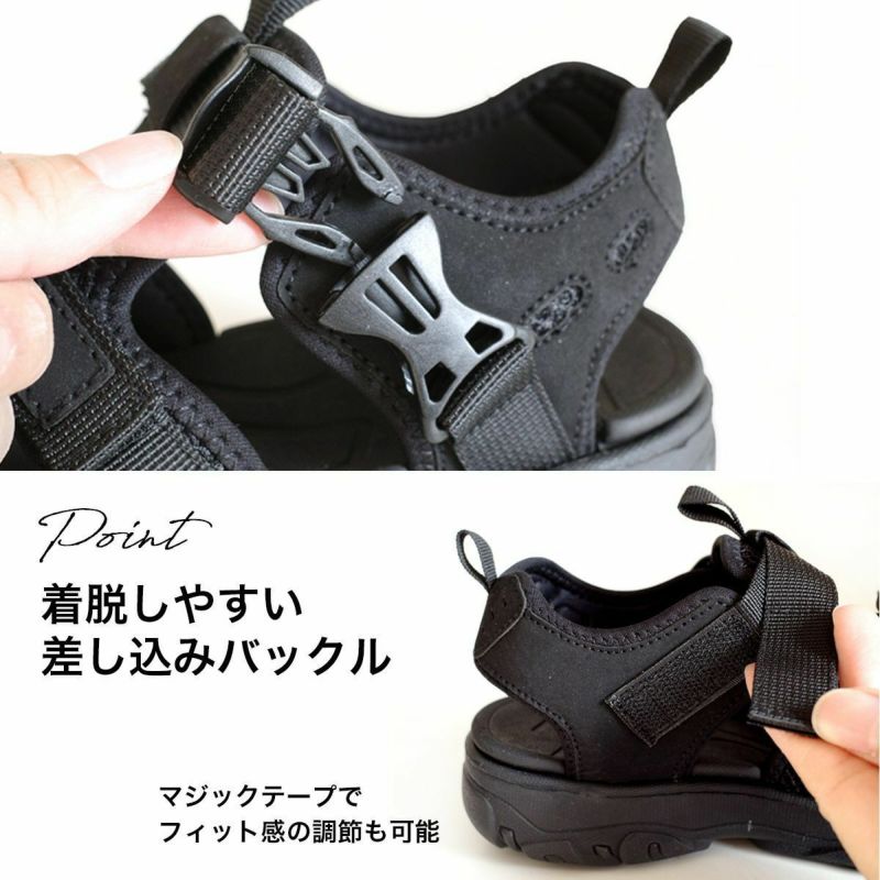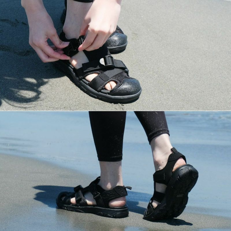 着脱しやすい差し込みバックル&マジックテープでフィット感の調節も可能。