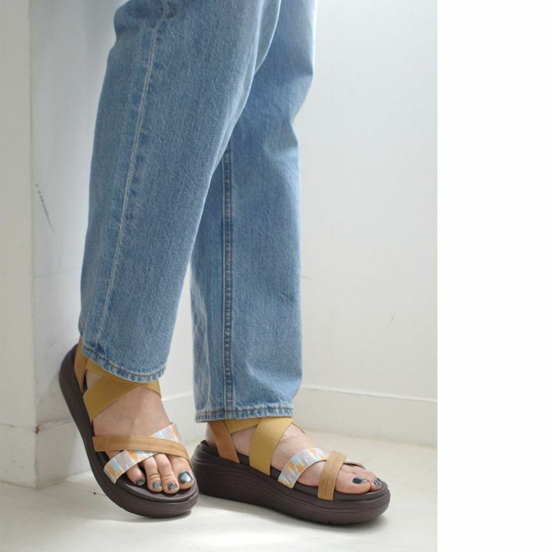 モズmozウエッジソールクロスゴムストラップサンダル厚底 レディース