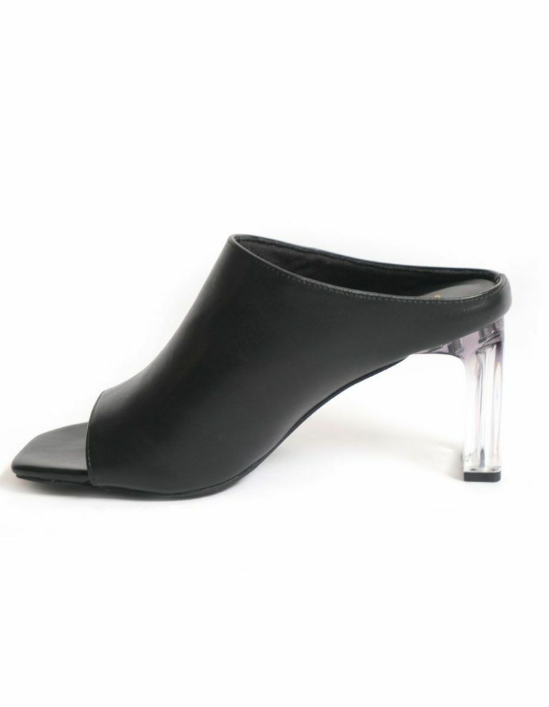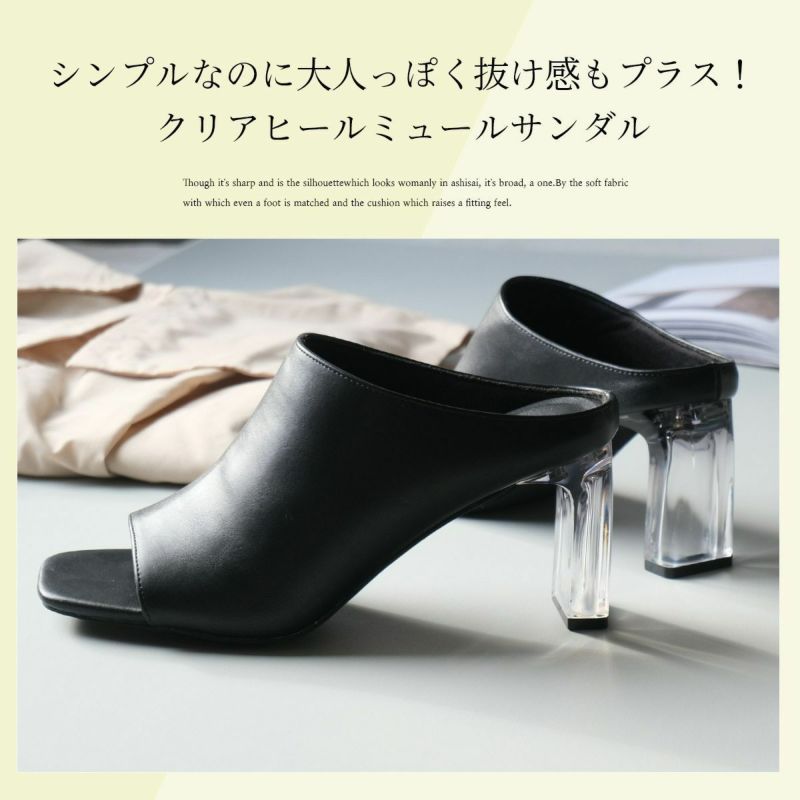 【在庫限り!特別価格!】クリアプレートヒールミュールサンダル レディース
