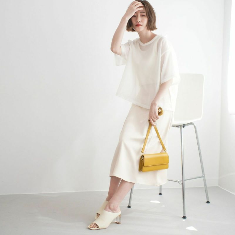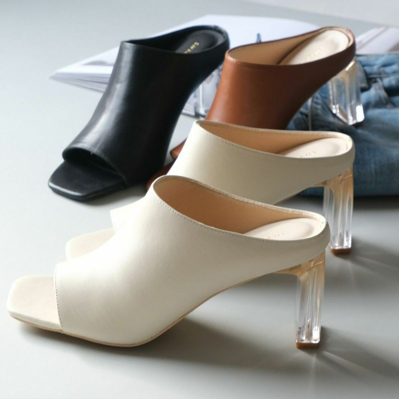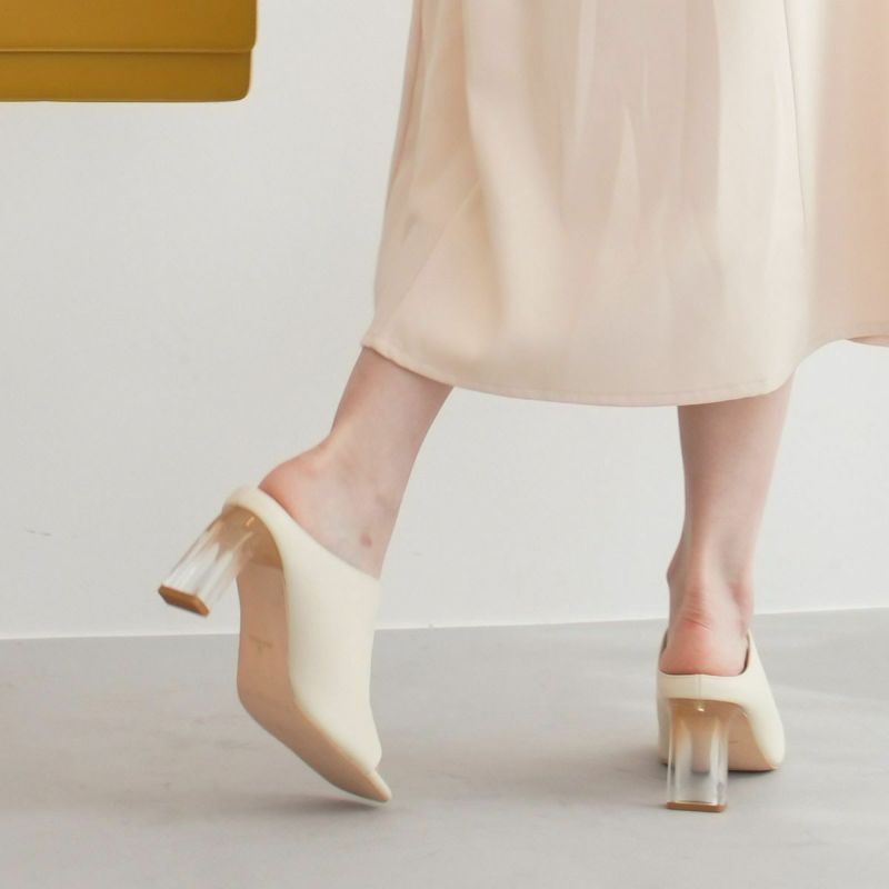 安定感とトレンド感を兼ね備えたクリア素材のプレートヒール
