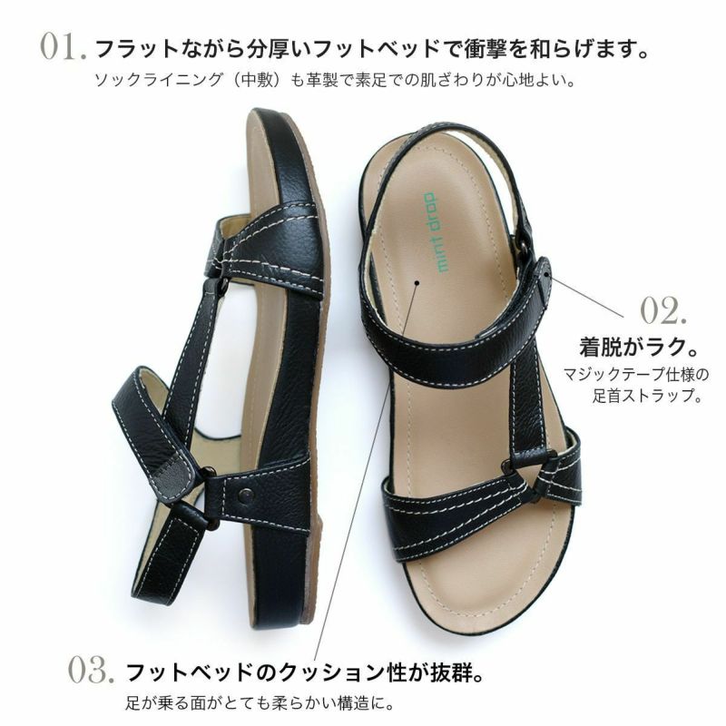 柔らかな天然皮革とステッチがコーデを格上げ。フットベッドのクッション性が抜群。