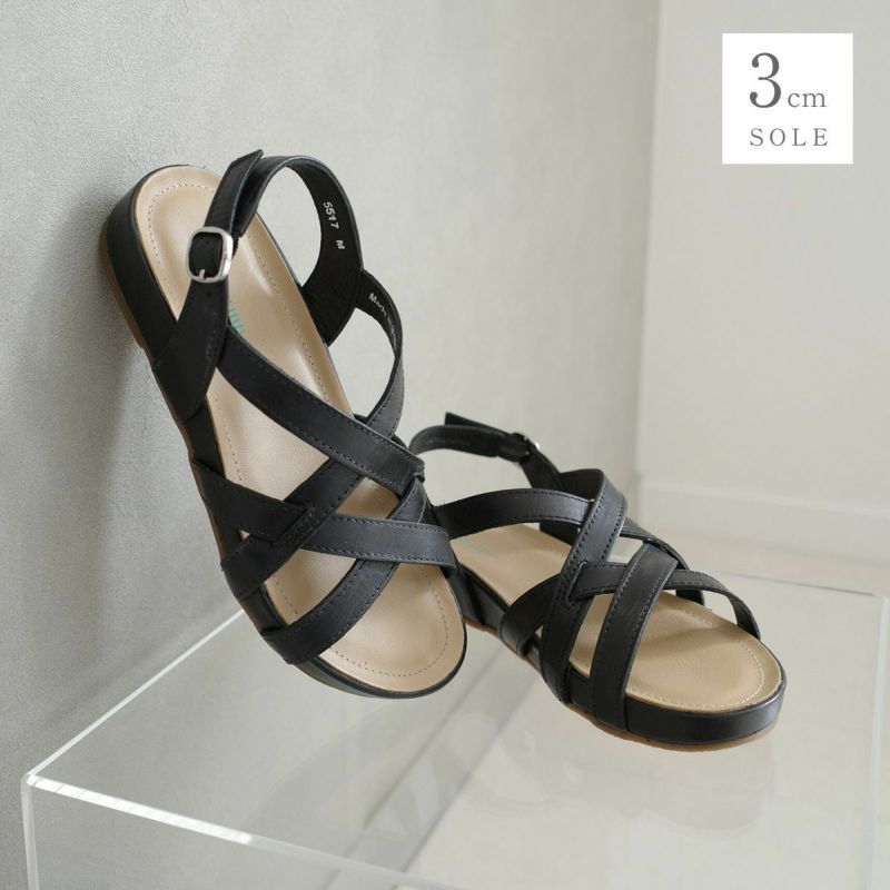 クロスベルトの程よい肌見せが大人カジュアルコーデにぴったり。フットベッドのクッション性が抜群!足が乗る面が柔らかい構造になっています。
