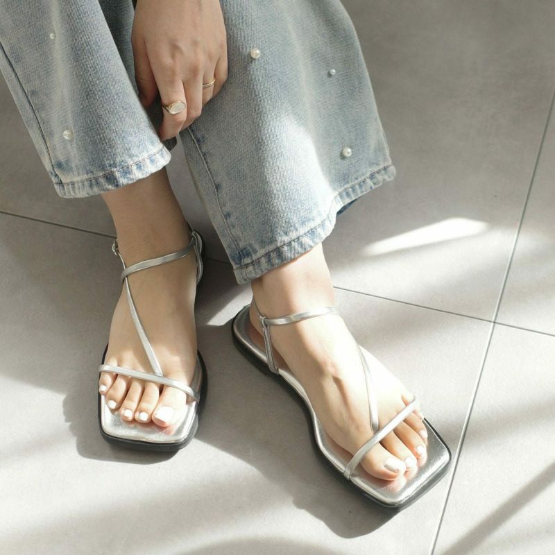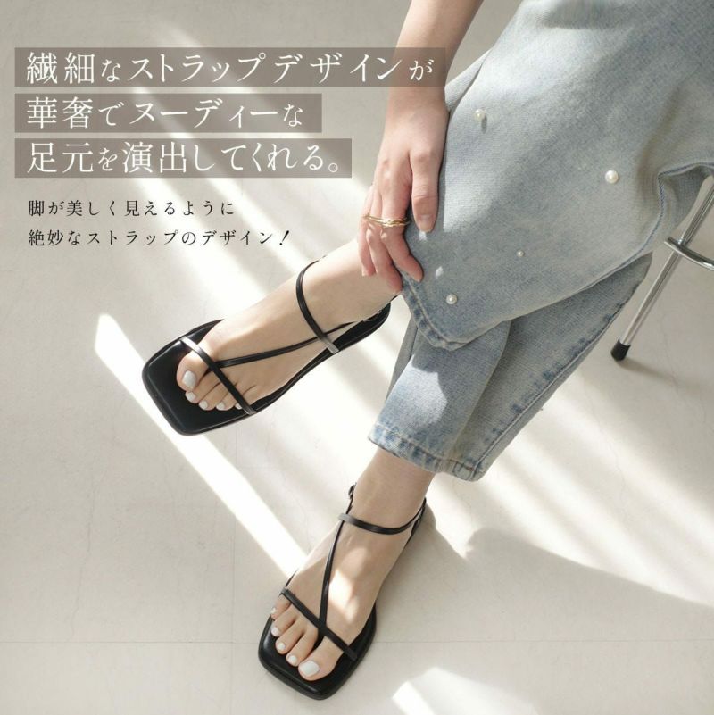 足を美しく見せてくれる華奢ストラップフラットサンダル