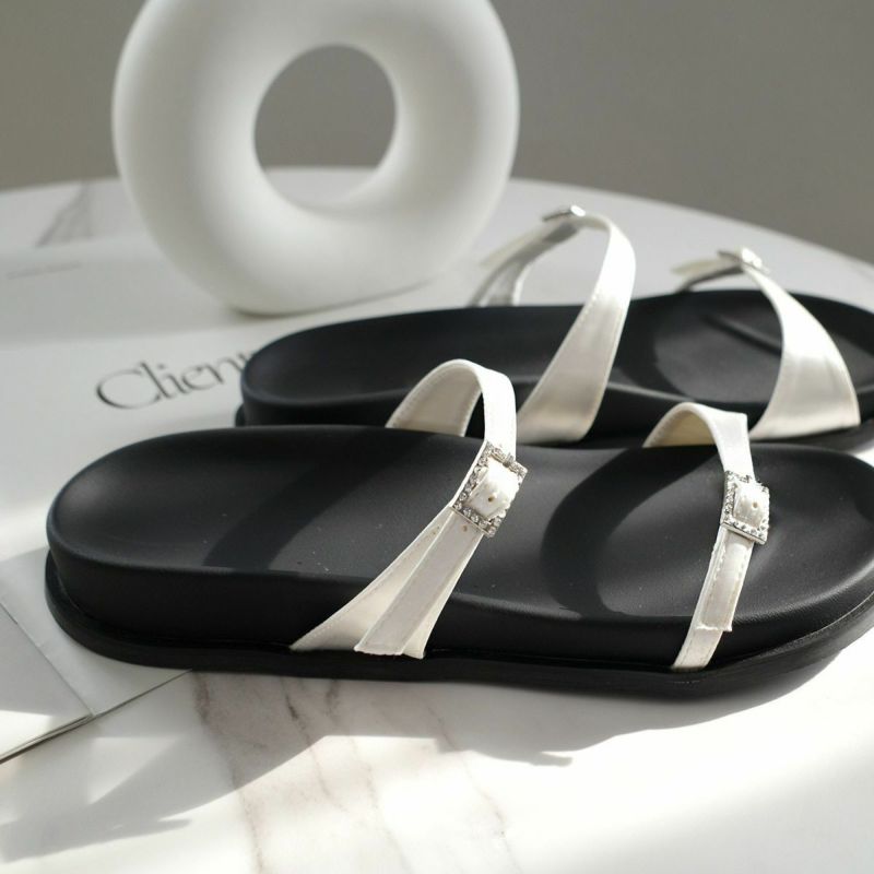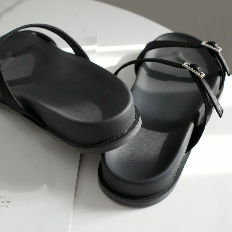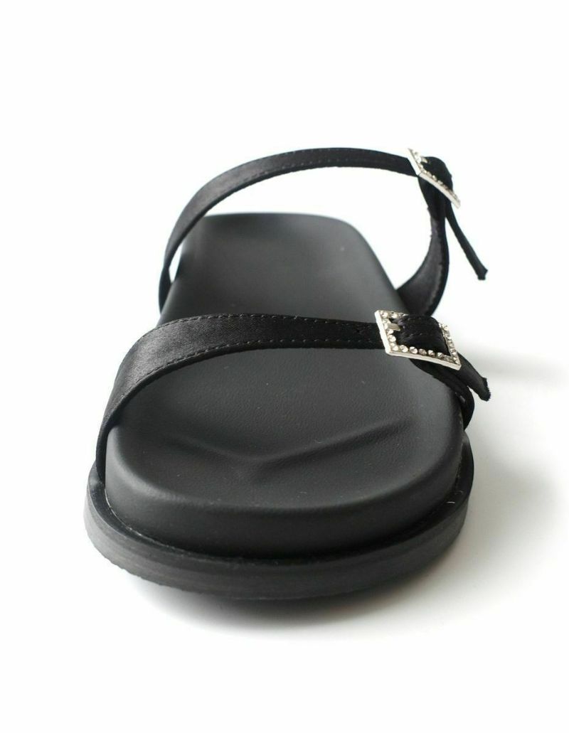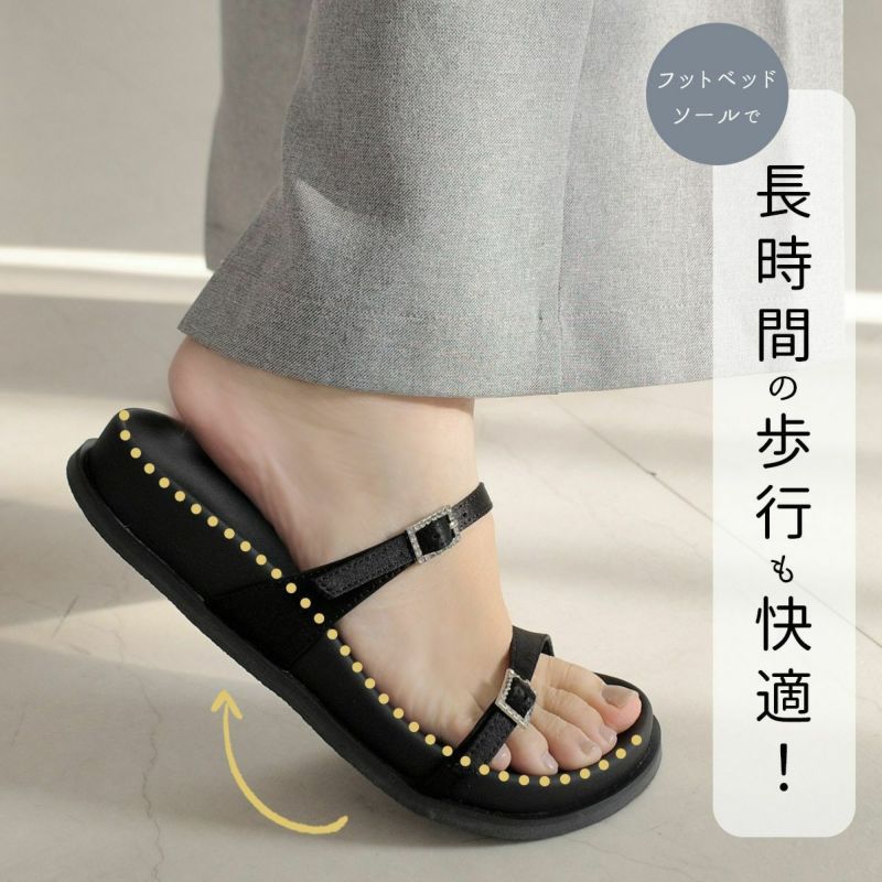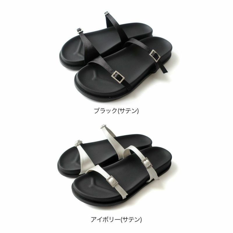 ラインストーン付きフットベッドサンダルサテンコンフォートサンダル レディース
