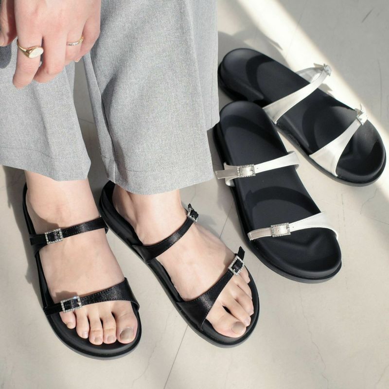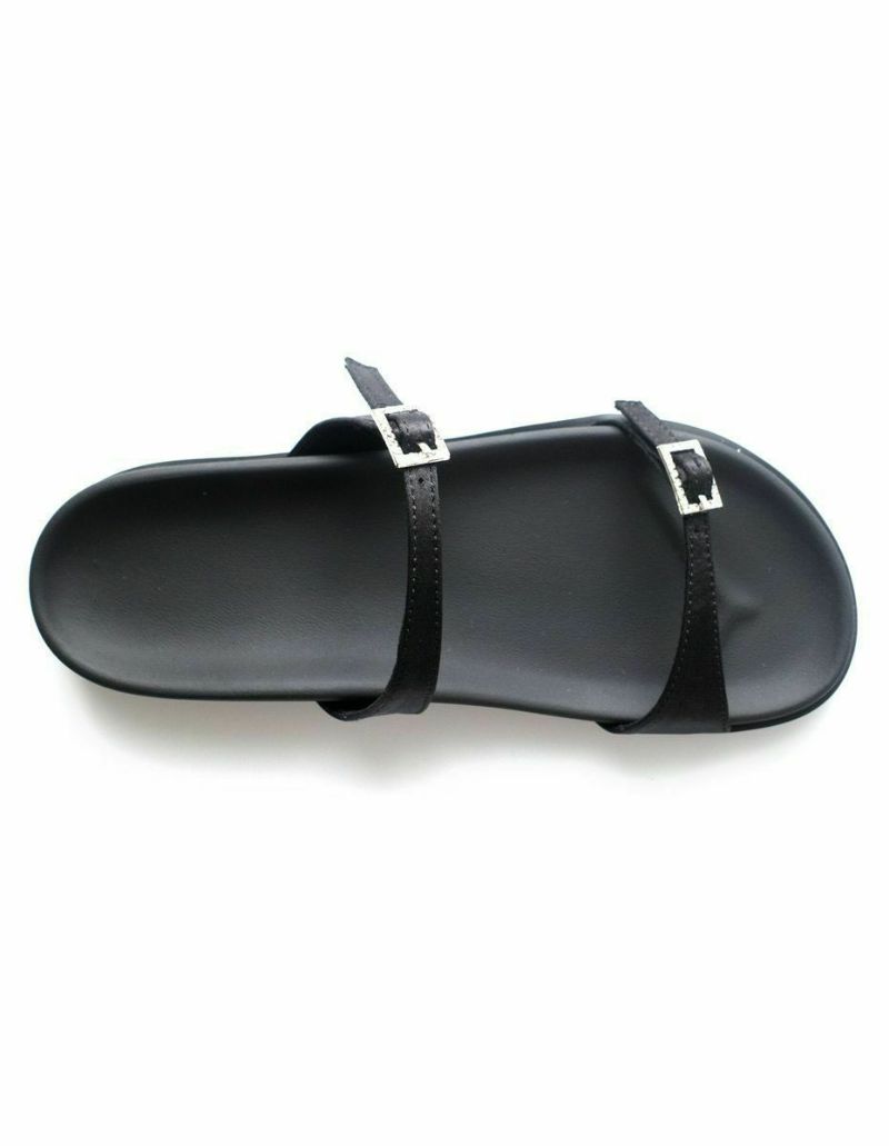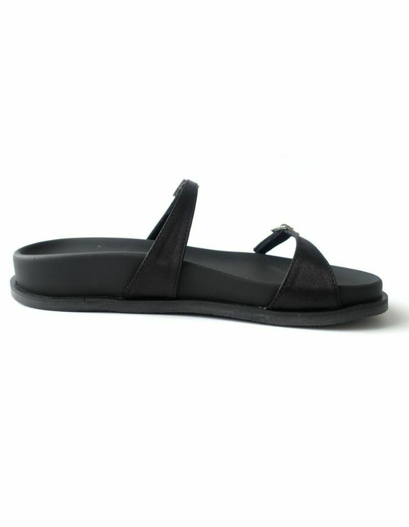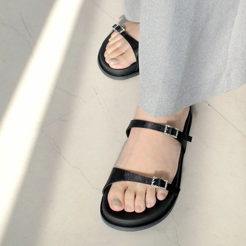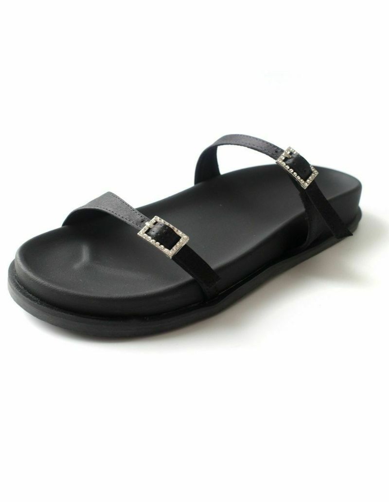 ラインストーン付きフットベッドサンダルサテンコンフォートサンダル レディース