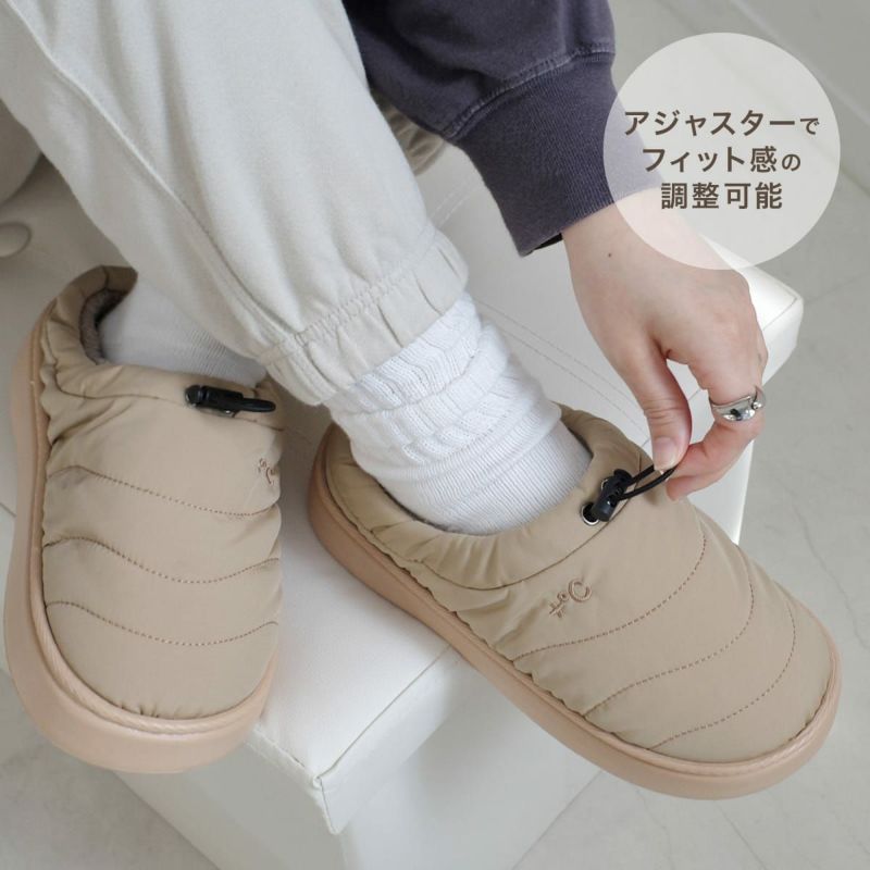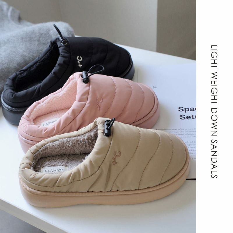 寒い季節にぴったりの、軽量で暖かい厚底ダウンサンダル