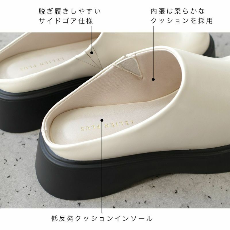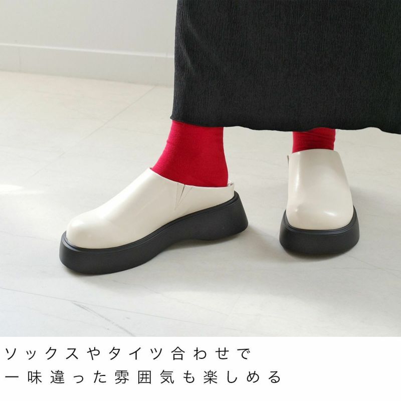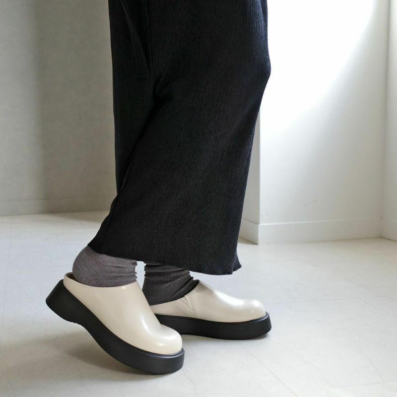 艶感のあるスムース生地を使用し、カジュアル過ぎない上品な仕上がりで大人の女性にも取り入れやすい一足。厚底ソール+適度なボリューム感とぽってりとした丸みのあるフォルムにこだわりました。