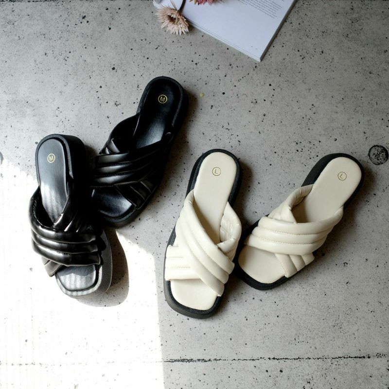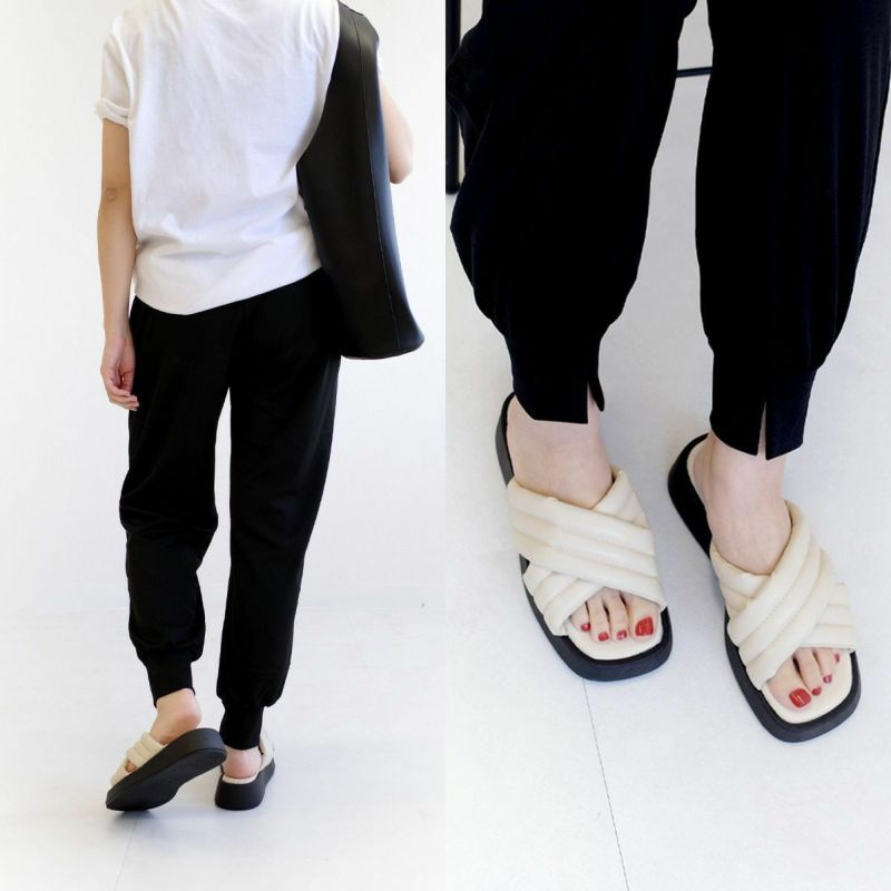 【返品交換不可】【在庫限り!特別価格!】ボンディングクロスミュールサンダル レディース