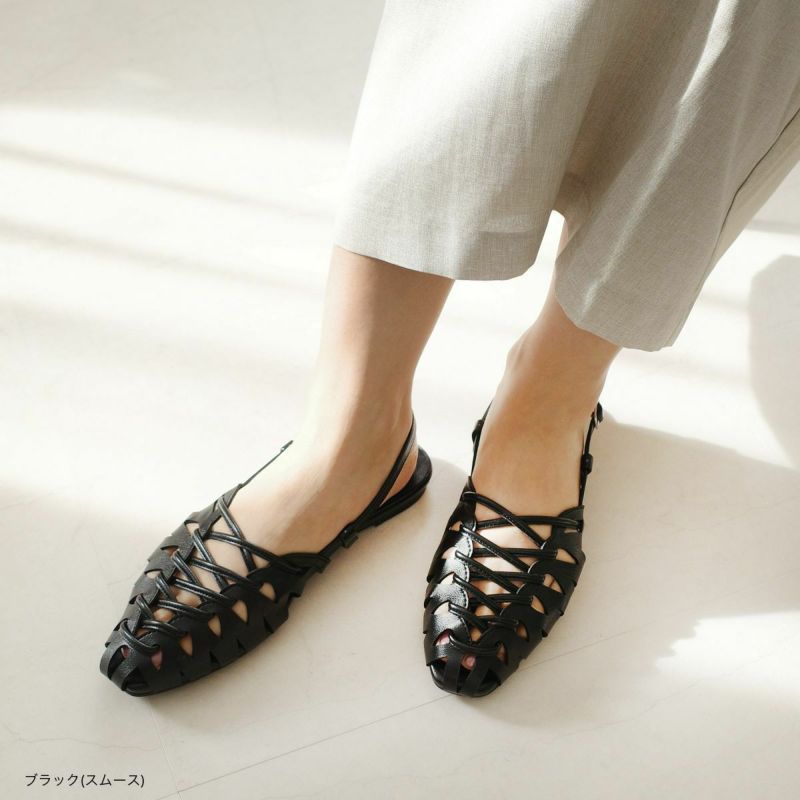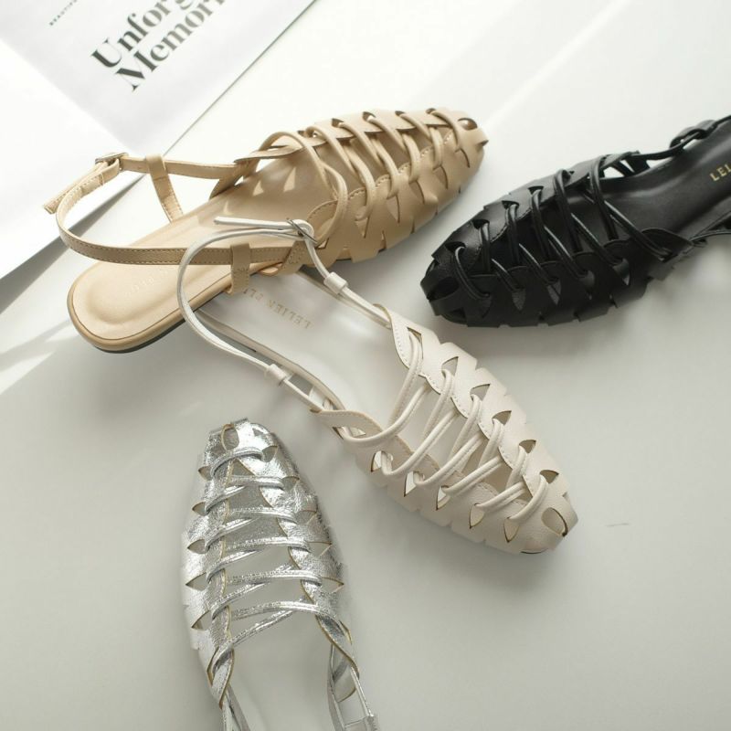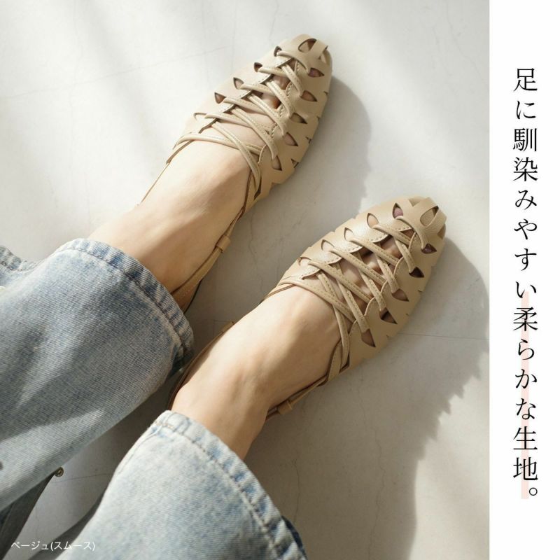 カットデザインと華奢ストラップが程よい抜け感と大人可愛い印象